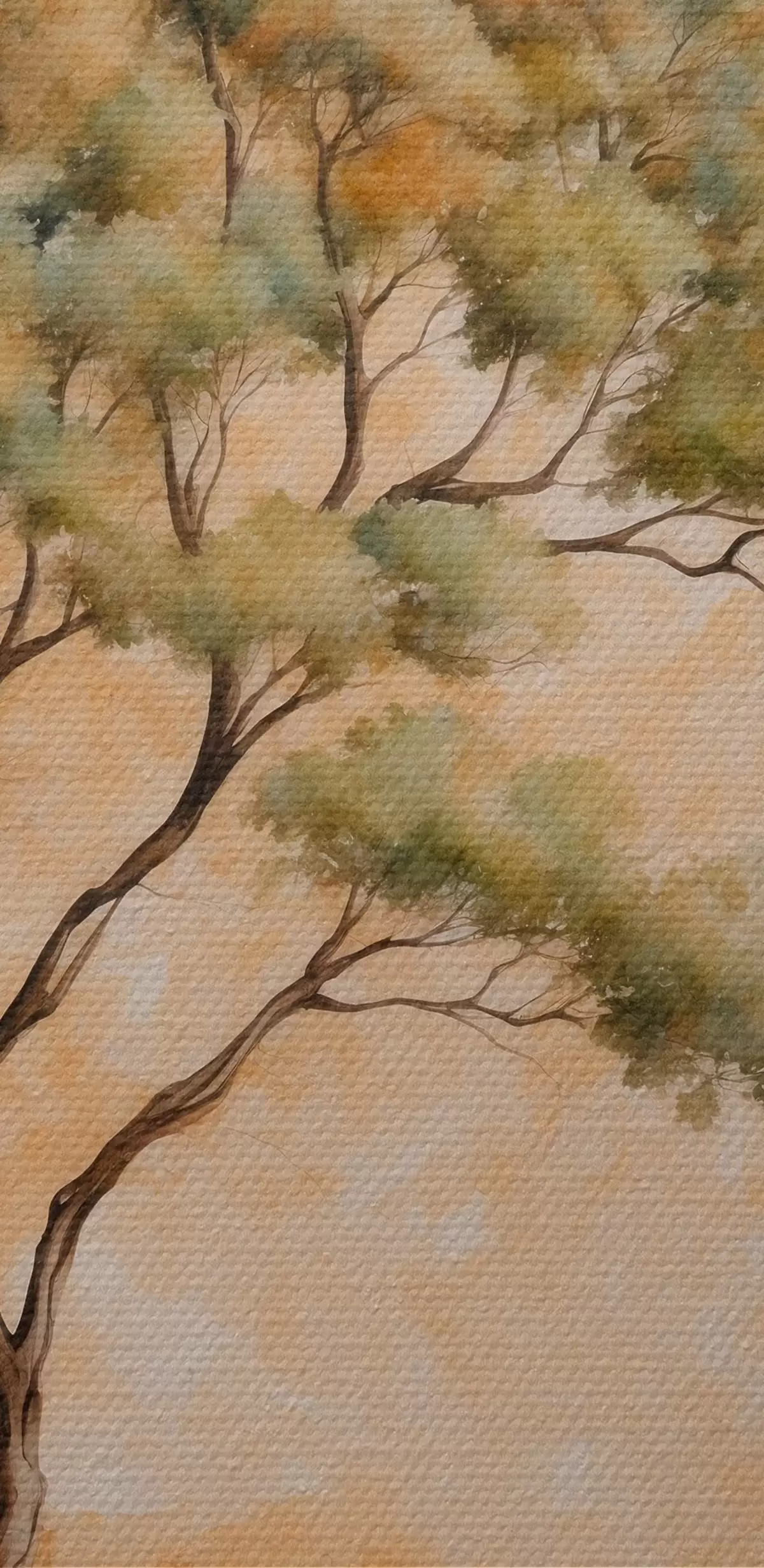 Vászonkép Fa narancssárga és fehér háttéren akvarell festmény stílusban Nr s42514