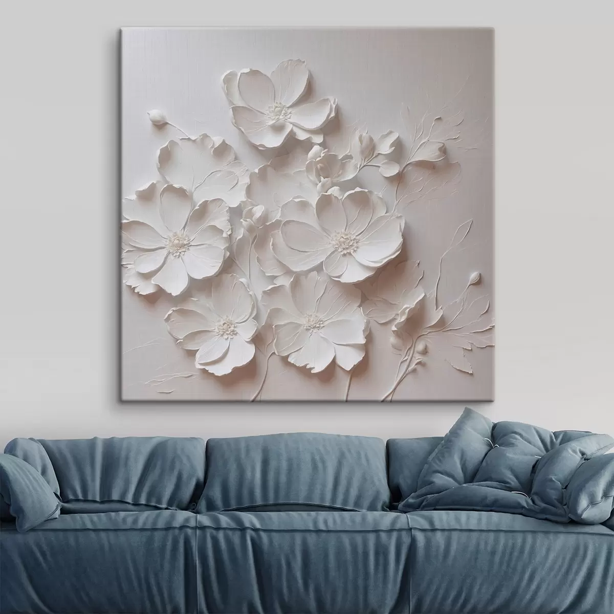 Vászonkép Fehér virágok fehér háttéren olajfestmény stílusban Nr s42516
