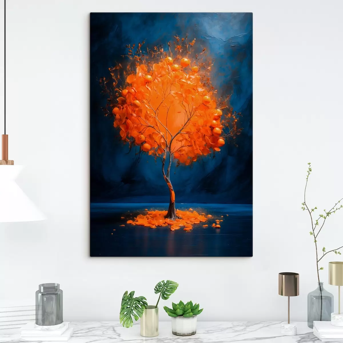 Vászonkép Narancssárga fa kék háttéren akril festmény stílusban Nr s42525