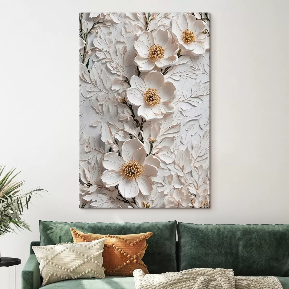 Vászonkép Fehér virágok és szárak olajfestmény stílusban Nr s42546