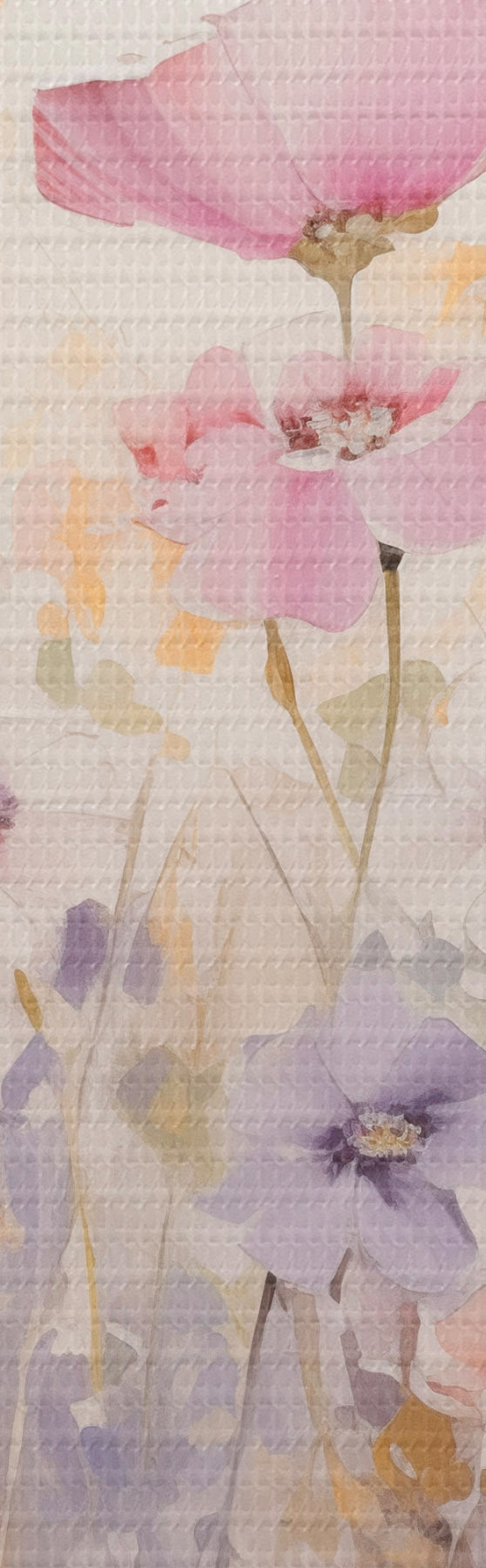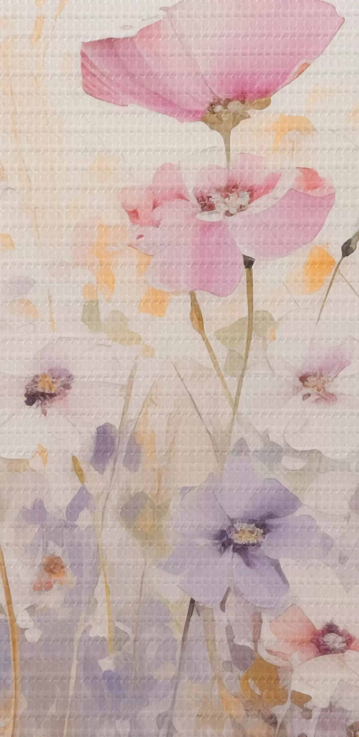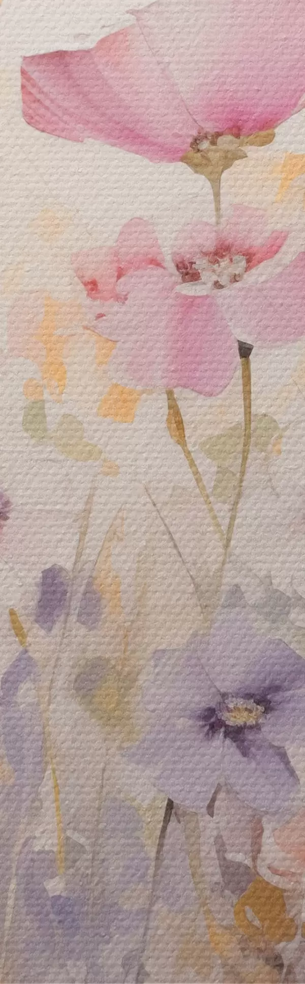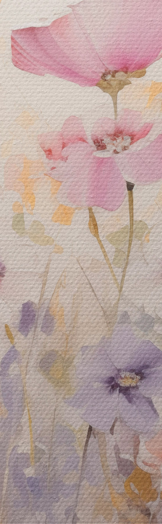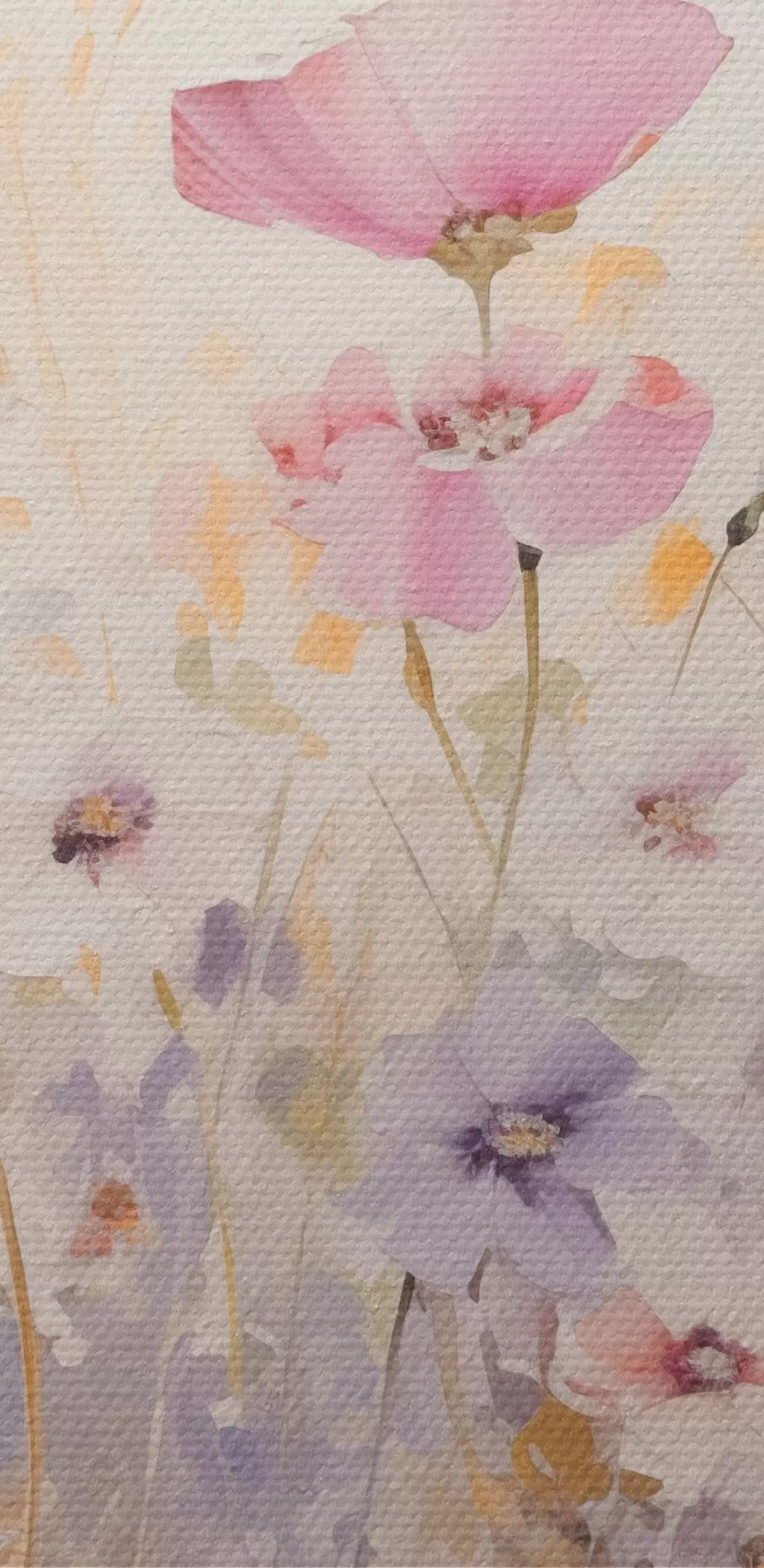Vászonkép Egy rét akvarell virágokkal, finom rózsaszín, lila és fehér árnyalatokkal, a könnyedség és a harmónia hangulatát teremtve. Nr s42557
