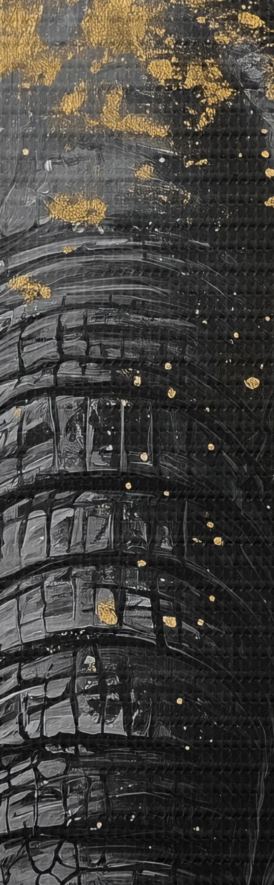 Ahhoz, hogy a vásznat a feszítőrúdra feszítsük anélkül, hogy a kép megsérülne, tükrözött képet használunk.
