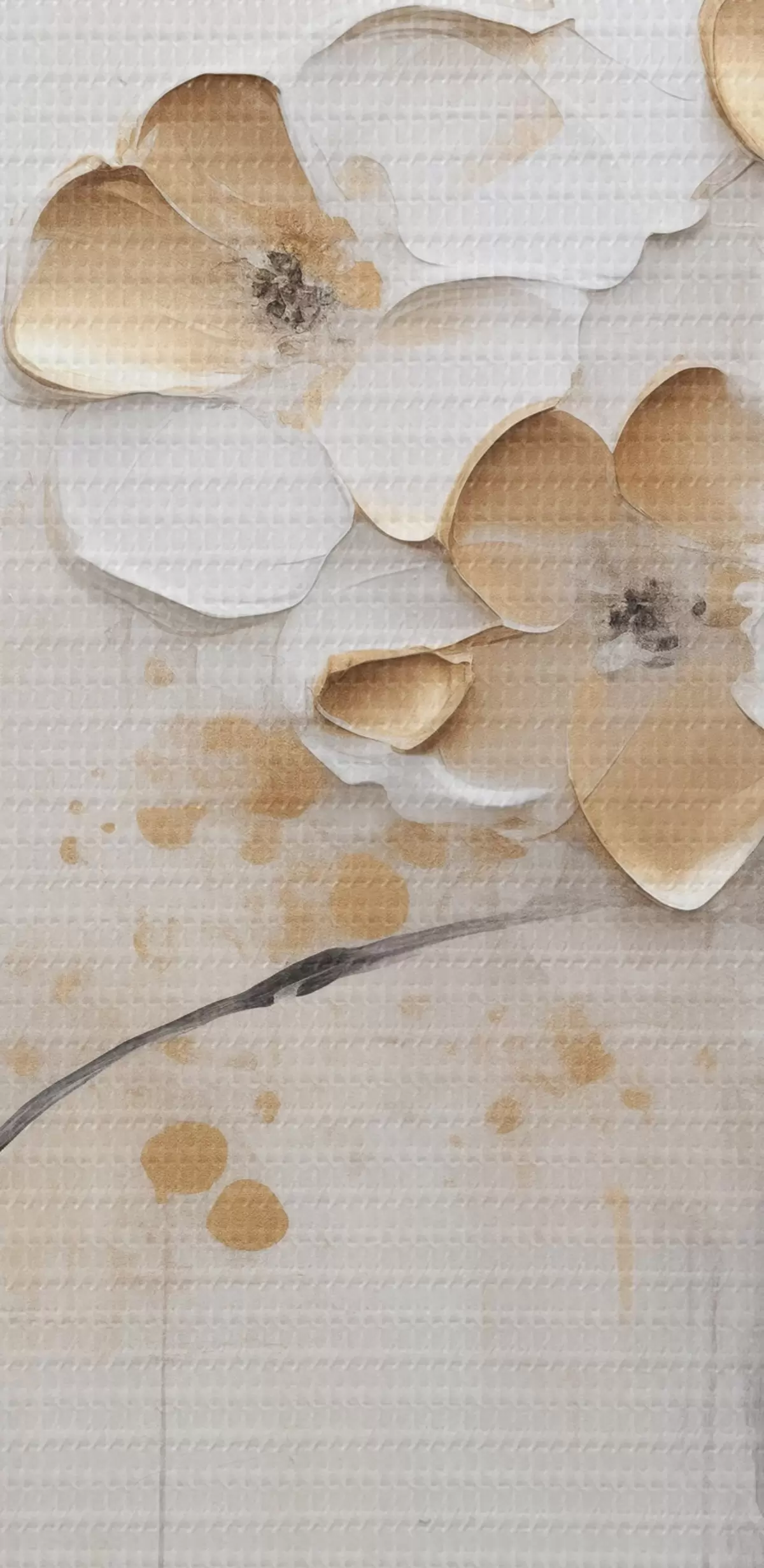 Vászonkép Virágok texturált szirmokkal, lágy, tompa háttérrel, absztrakt színfoltokkal és függőleges vonalakkal Nr s42713