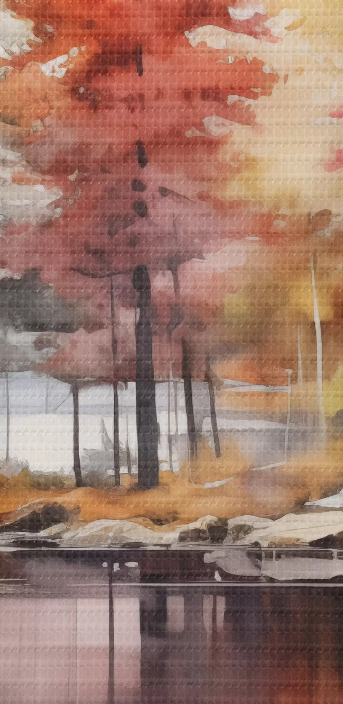 Vászonkép Akvarellszerű táj egy tóval, amelyet fák vesznek körül élénk őszi színekben pompázó fákkal Nr s42727