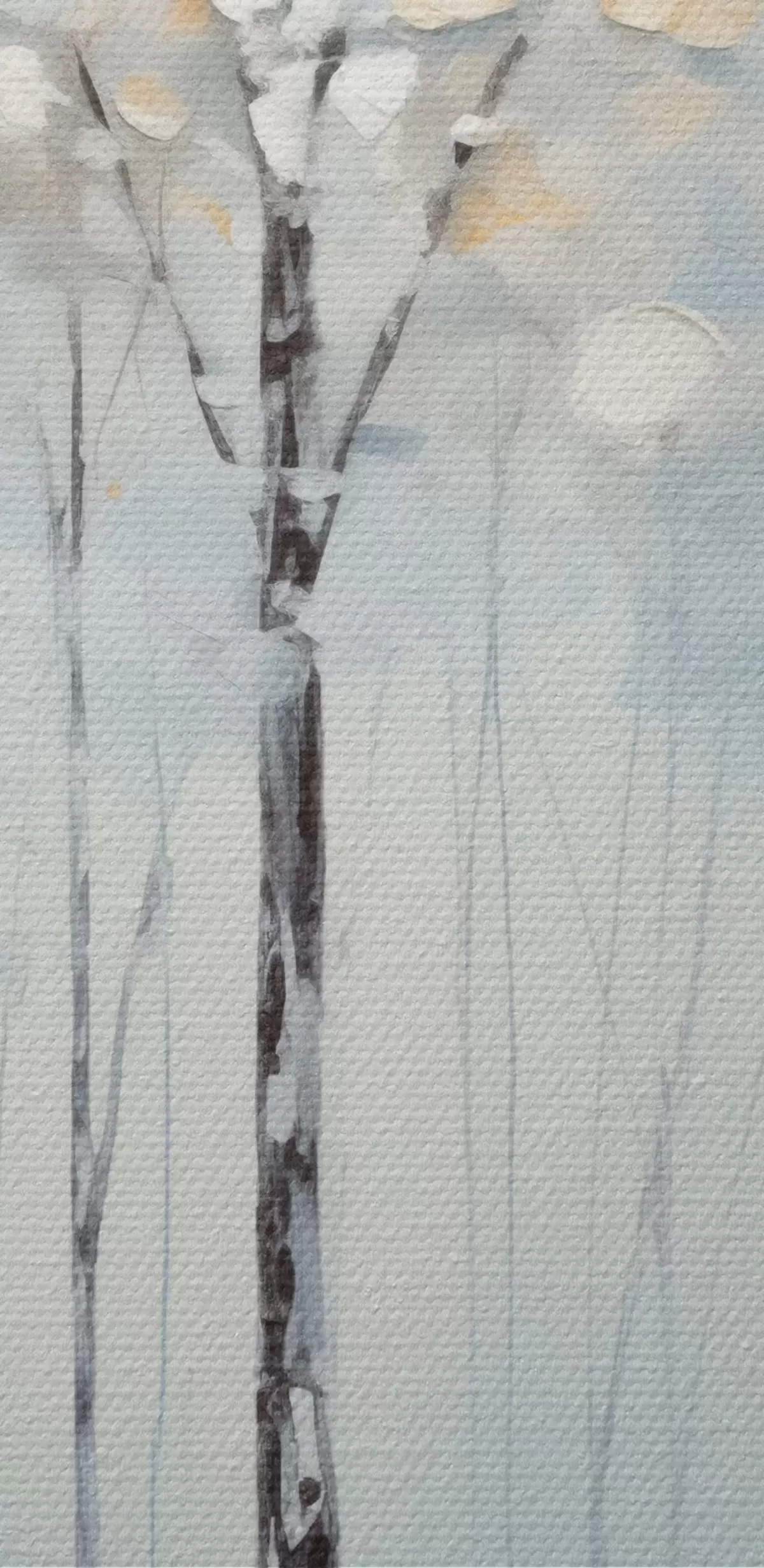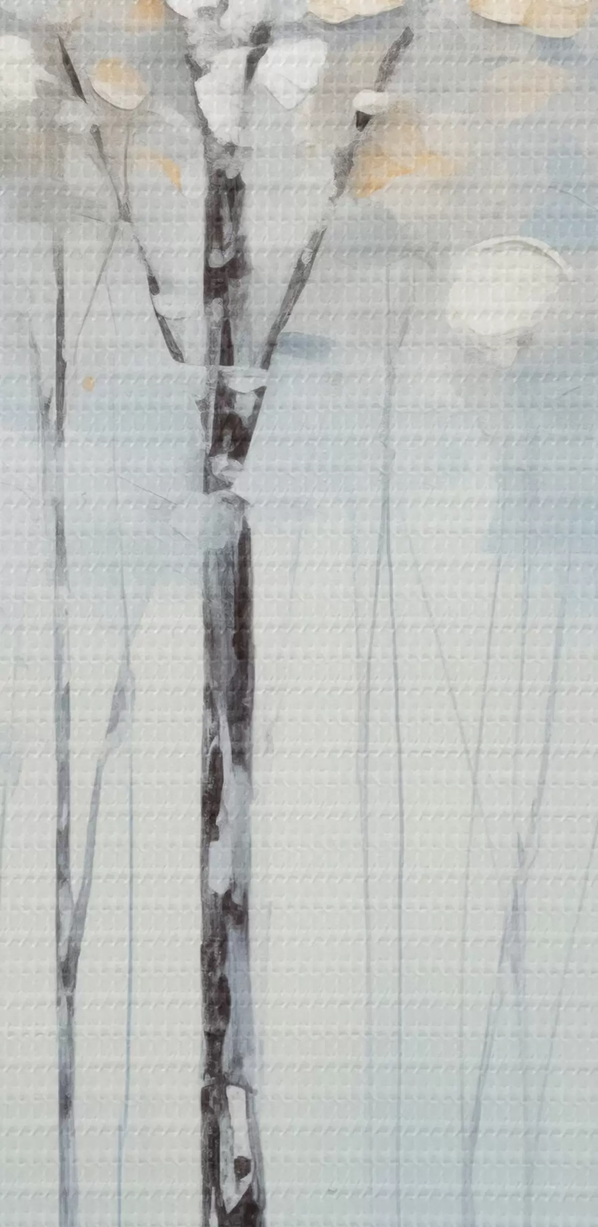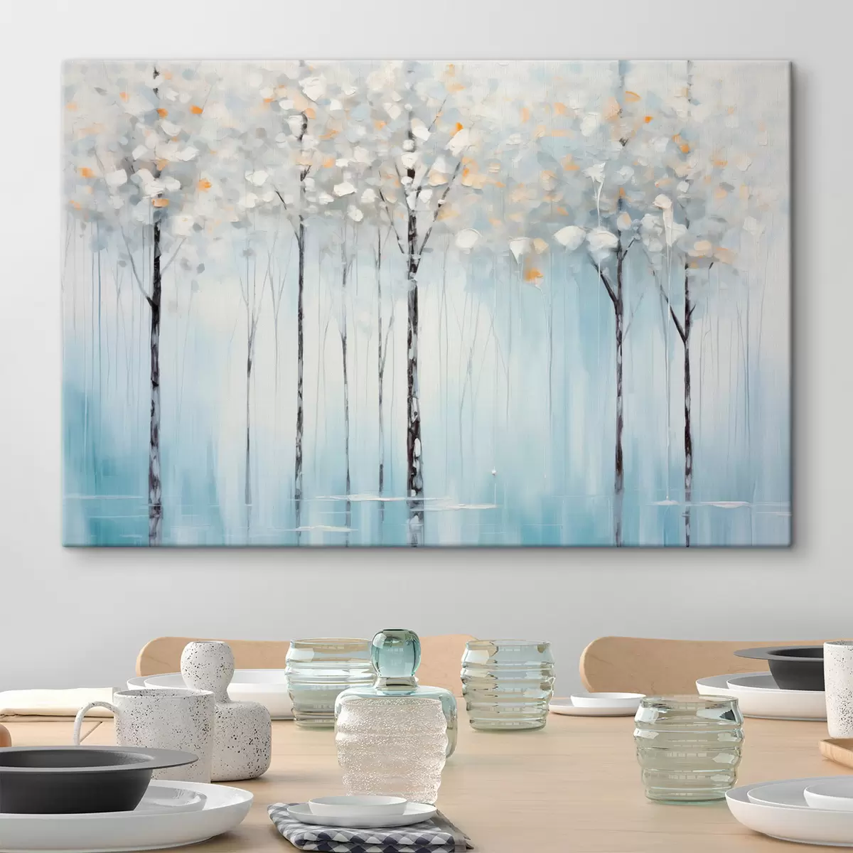 Vászonkép Magas, karcsú fák kék levelekkel és sárga árnyalatokkal lágy kék háttéren, olajfestmény utánzat Nr s42731