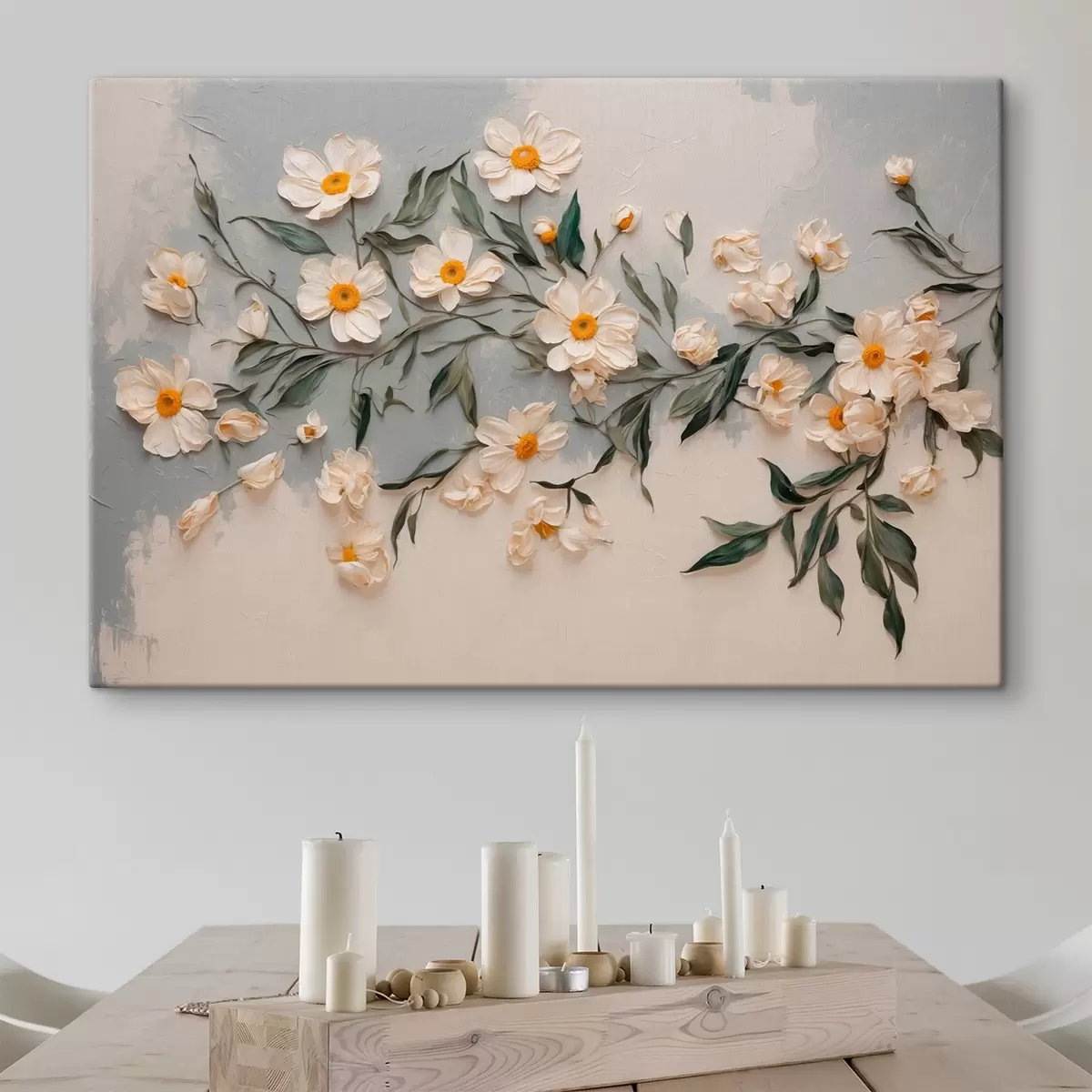 Vászonkép Fehér virágok és levelek fehér és szürke háttéren Nr s42764