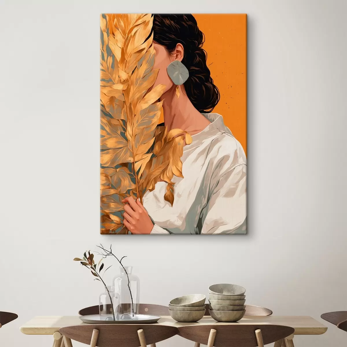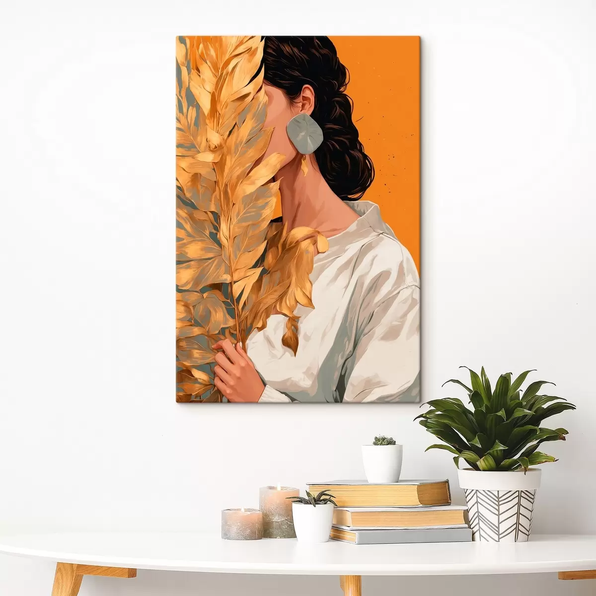 Vászonkép Lány trópusi levéllel Nr s42765