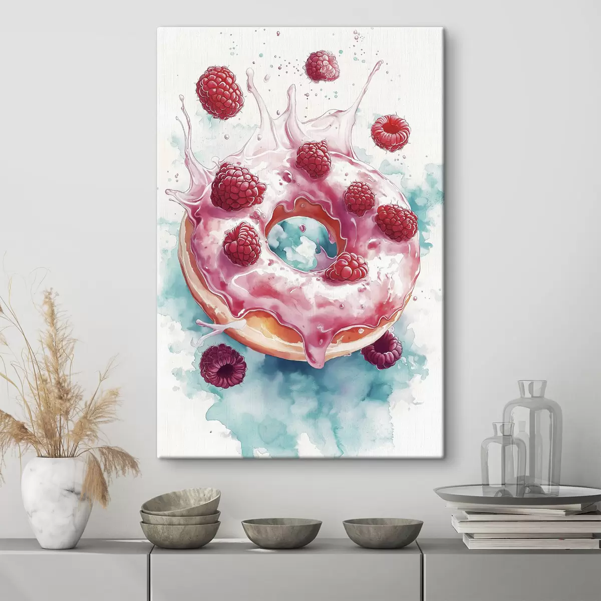 Vászonkép Akvarell donát málnával, rózsaszín és kék színekkel Nr s42787