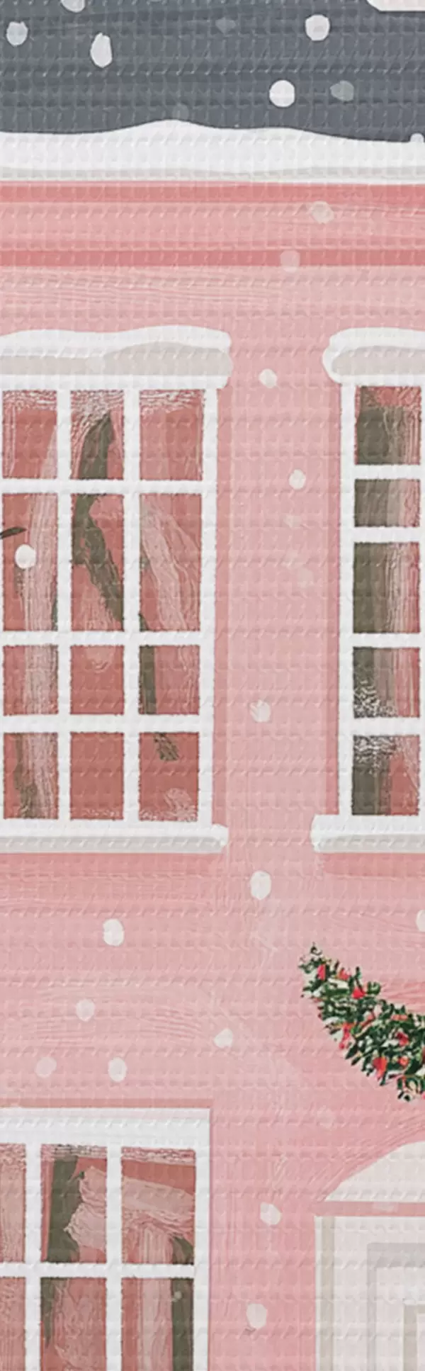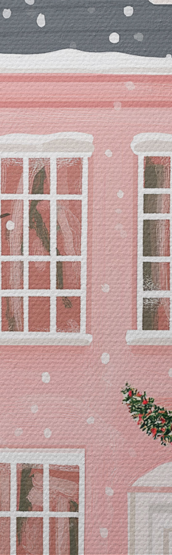 Vászonkép Aranyos rózsaszín házak, fenyőfák, téli tájak Nr s42791