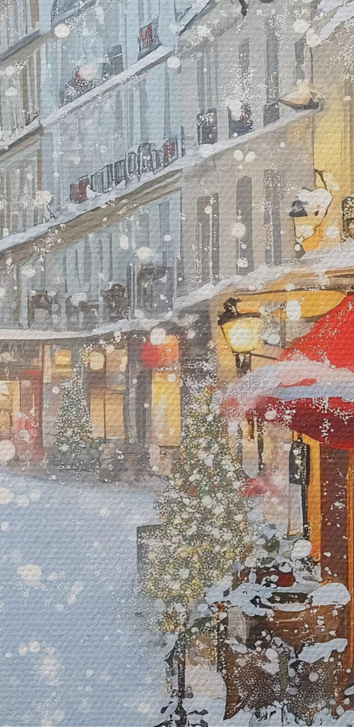 Vászonkép Hangulatos téli kávézó, kávéscsészék, akril stílus, régi városi építészet Nr s42795