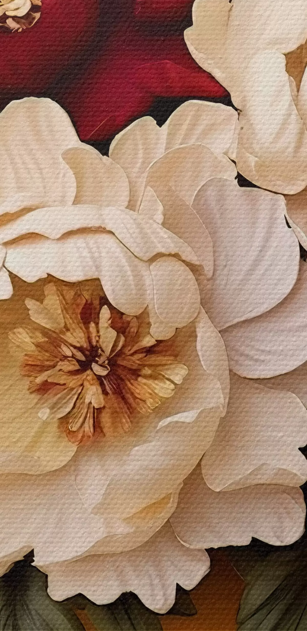 Vászonkép Piros és fehér bazsarózsa vázában Nr s42820