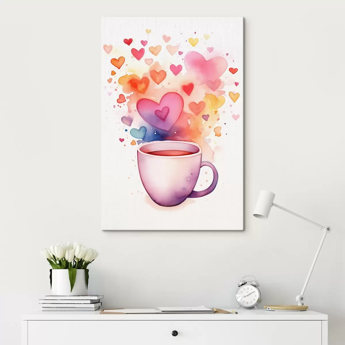Vászonkép Egy csésze akvarell szívek hátterén Nr s42869