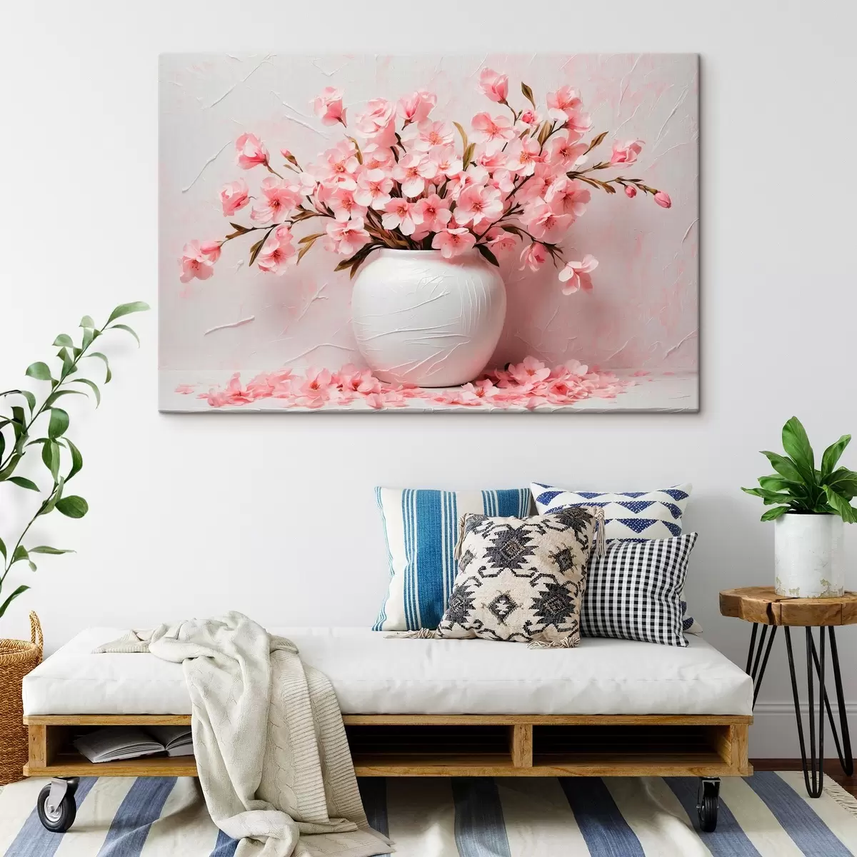 Vászonkép Rózsaszín virágok fehér vázában Nr s42915