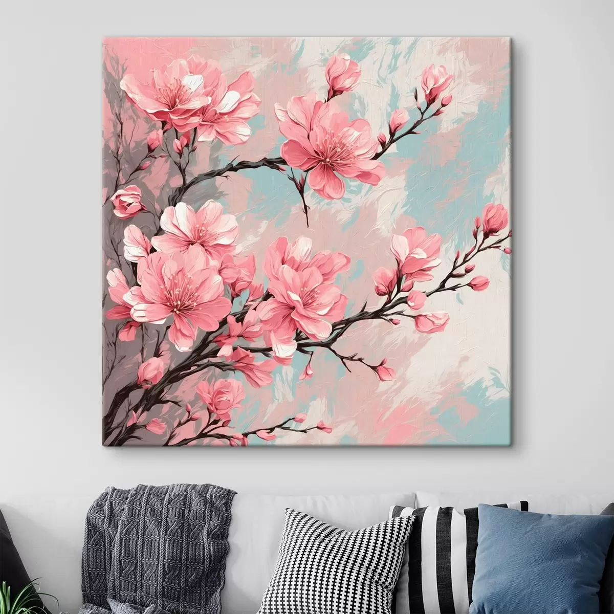 Vászonkép Rózsaszín virágok és szárak akril festmény stílusban Nr s42918