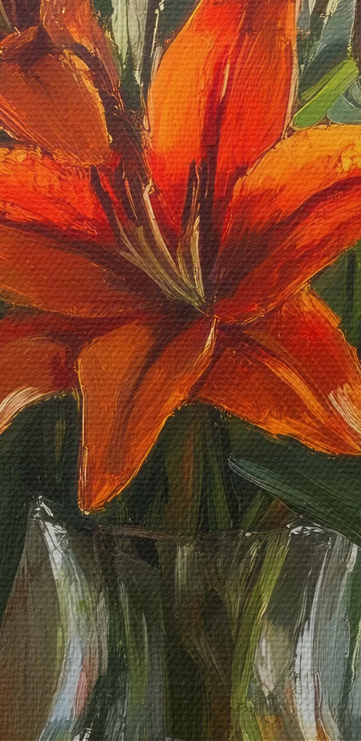 Vászonkép Vörös liliomok az olajfesték stílusában Nr s42977