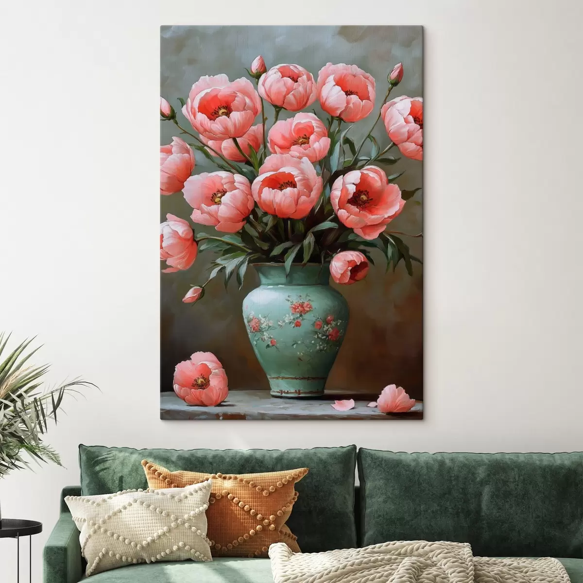 Vászonkép Dús rózsaszín virágok vázában Nr s42979