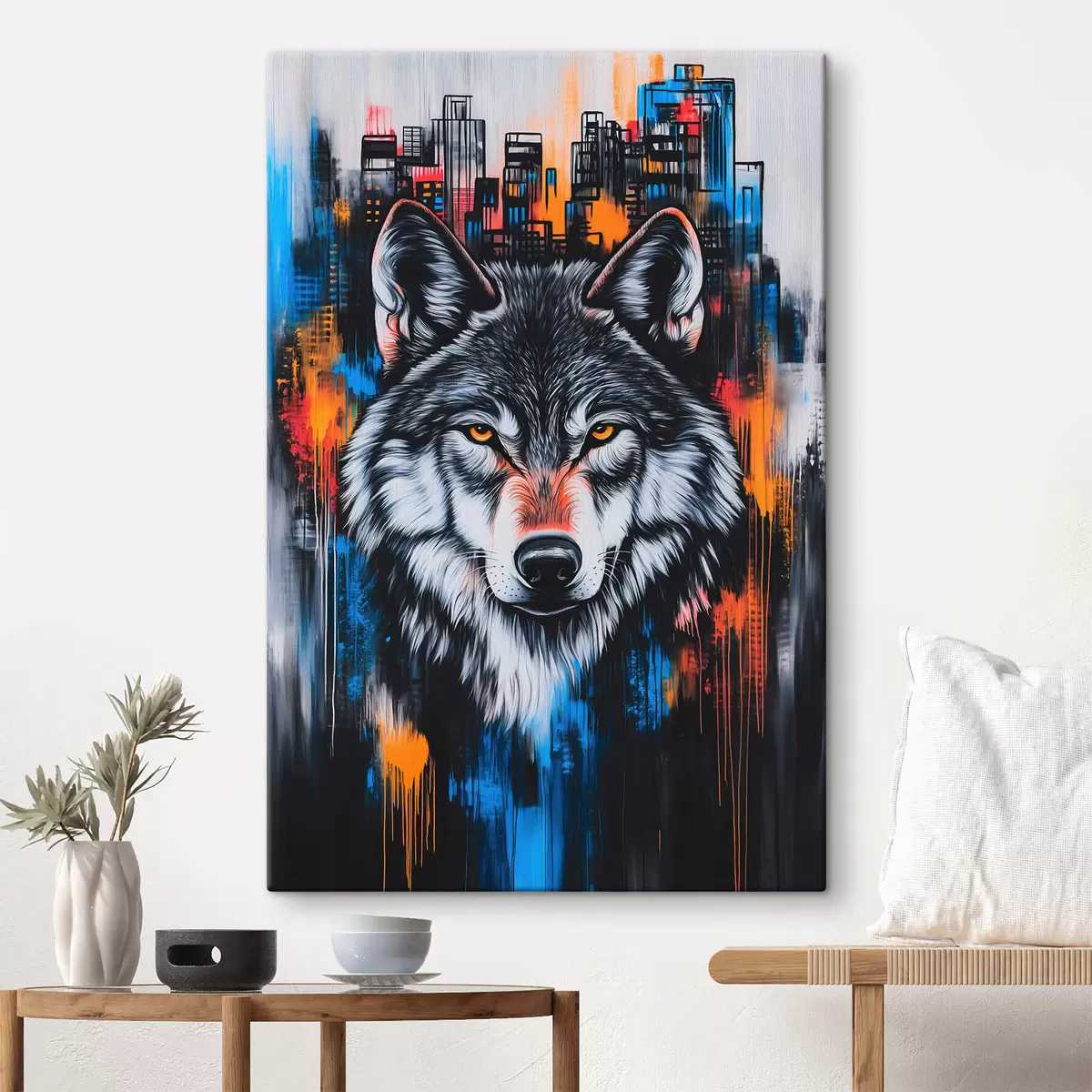 Vászonkép Egy farkas a város hátterében Nr s42994