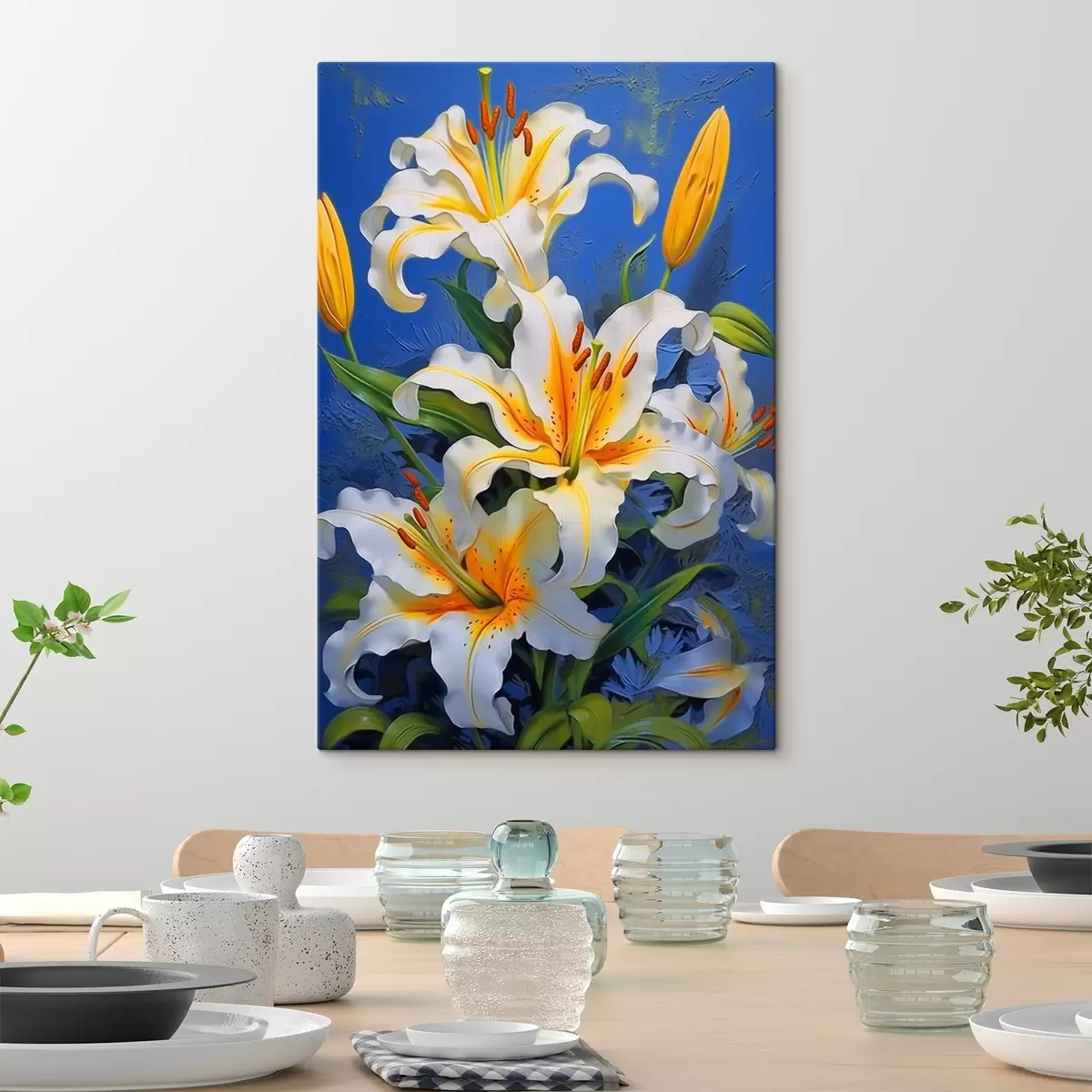 Vászonkép Fehér liliom kék háttéren Nr s43018