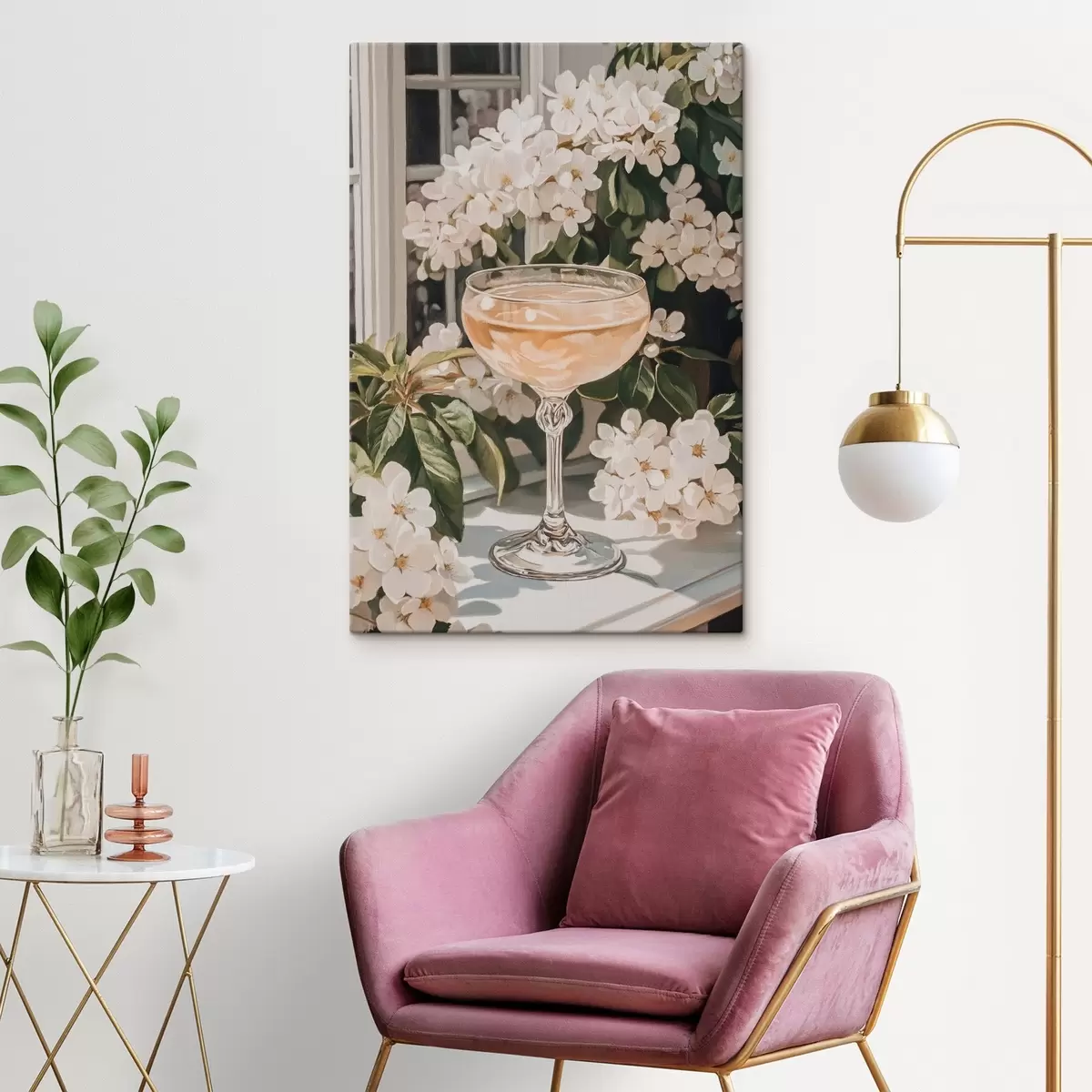 Vászonkép Pezsgőspohár, vintage, akvarell stílus, fehér virágok Nr s43051