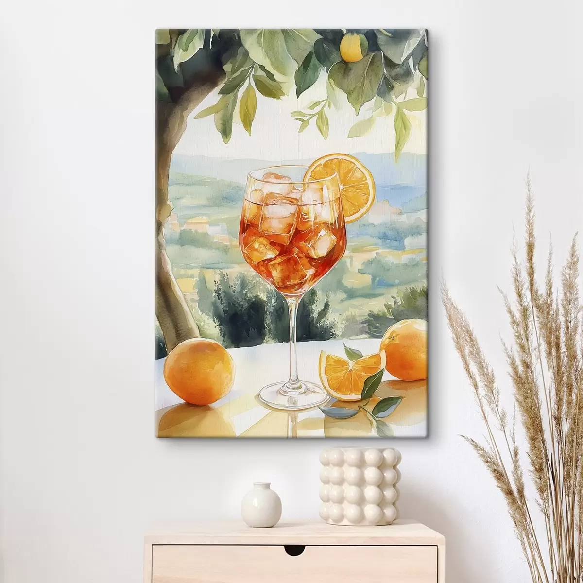 Vászonkép Nyári koktél, Aperol Spritz, narancsok, akvarell stílusú rajz Nr s43058