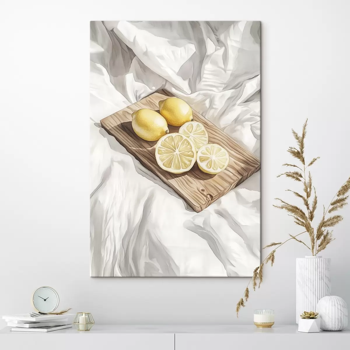 Vászonkép Citromok a fatáblán, akvarell, rusztikus stílusban Nr s43064