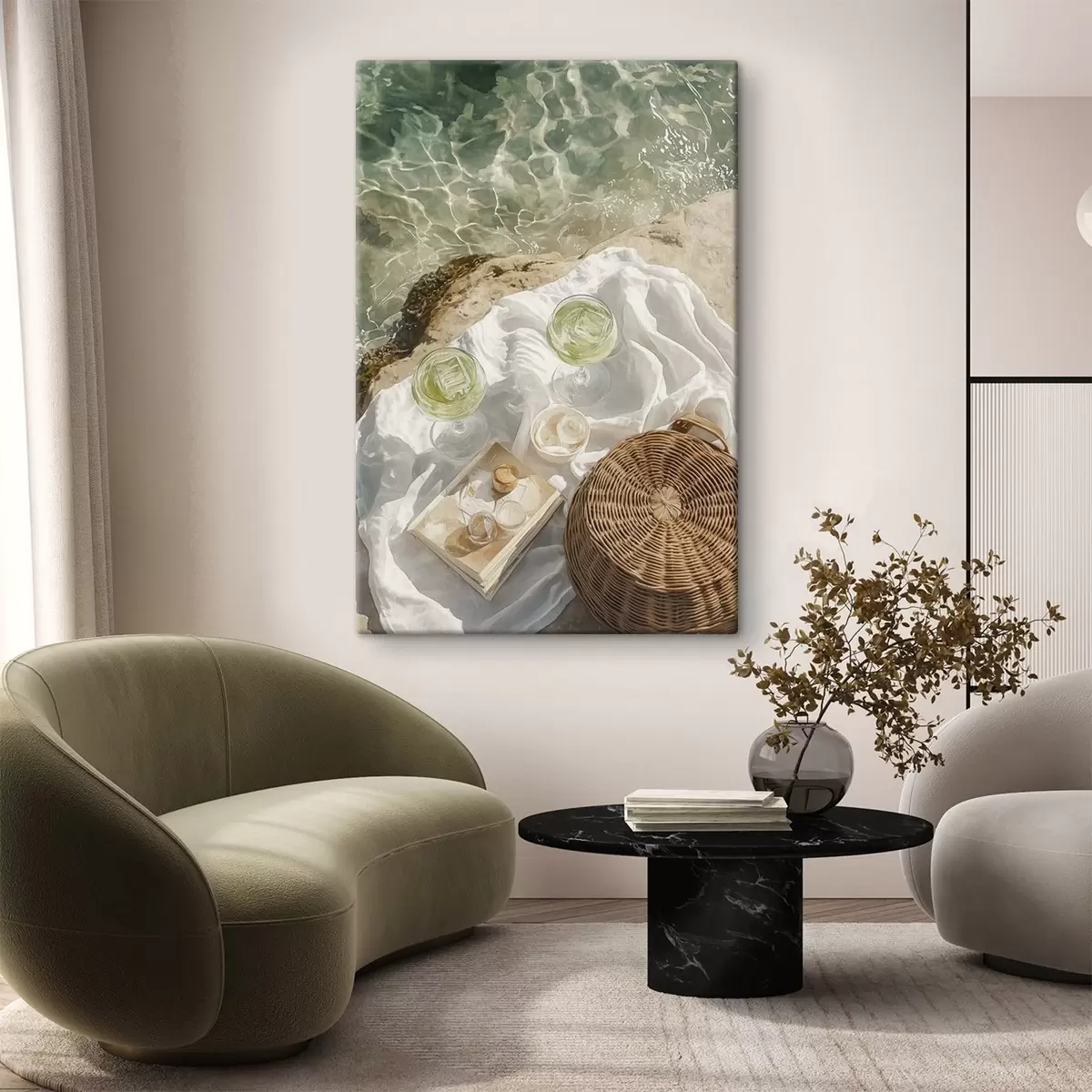 Vászonkép Nyári esztétika, óceáni hullámok, strand, koktélok, akvarell stílusban Nr s43069