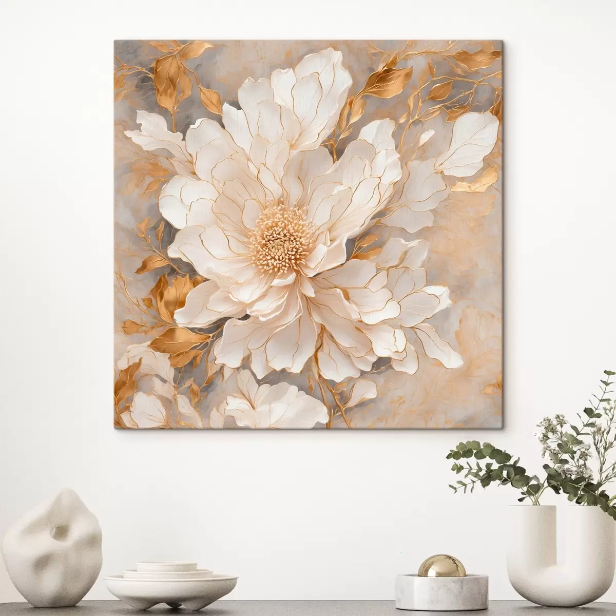 Vászonkép Fehér virág levelekkel akril festmény stílusban Nr s43115