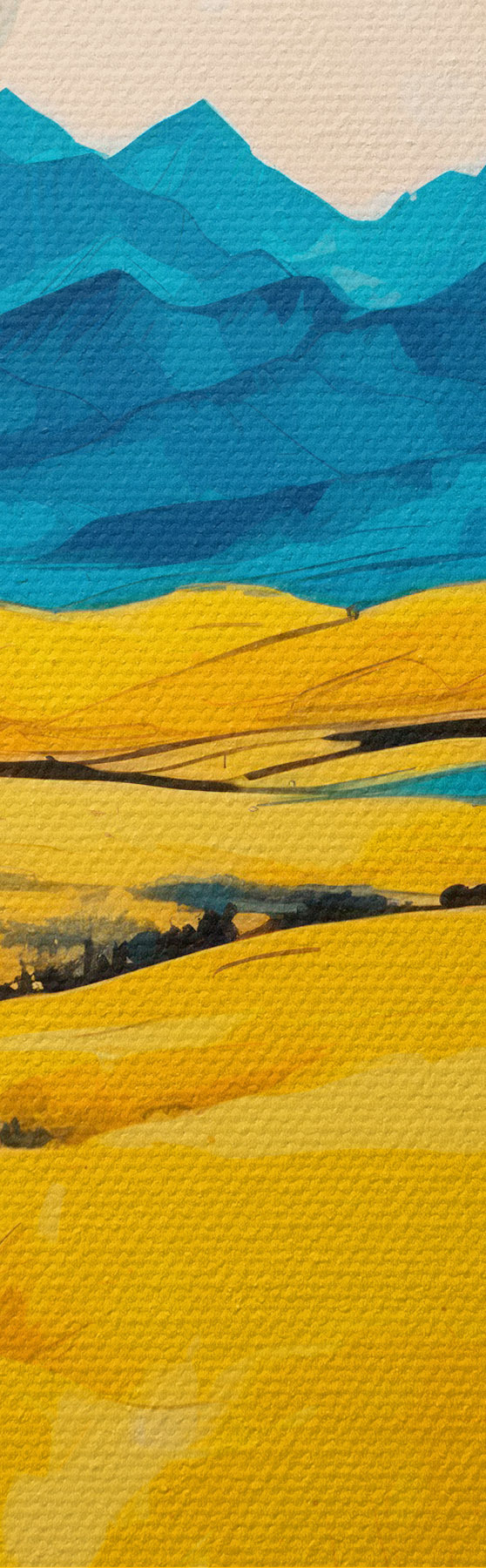 Vászonkép Sárga mező a háttérben a hegyek akvarell festmény stílusban Nr s43117