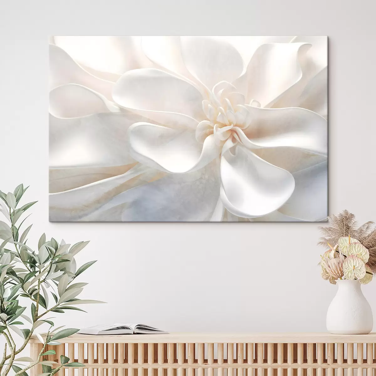 Vászonkép Közelkép egy zajos textúrájú fehér absztrakt virágról, finom szirmokkal, pasztell színekkel Nr s43161