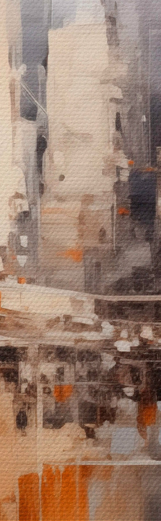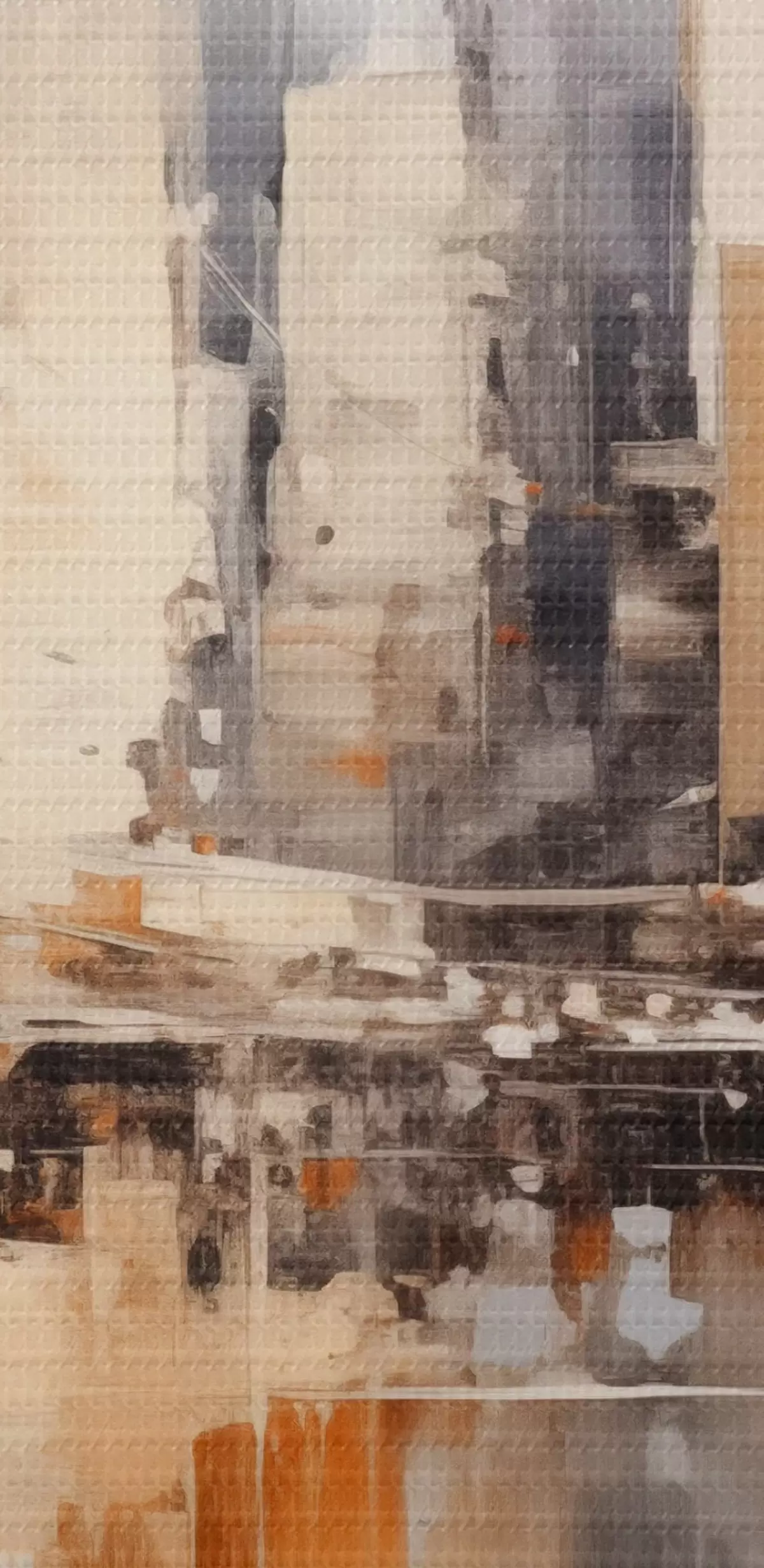 Vászonkép Absztrakt városkép festmény magas épületekkel barna, szürke és fehér árnyalatokban , az alatta lévő vízben tükröződik Nr s43168