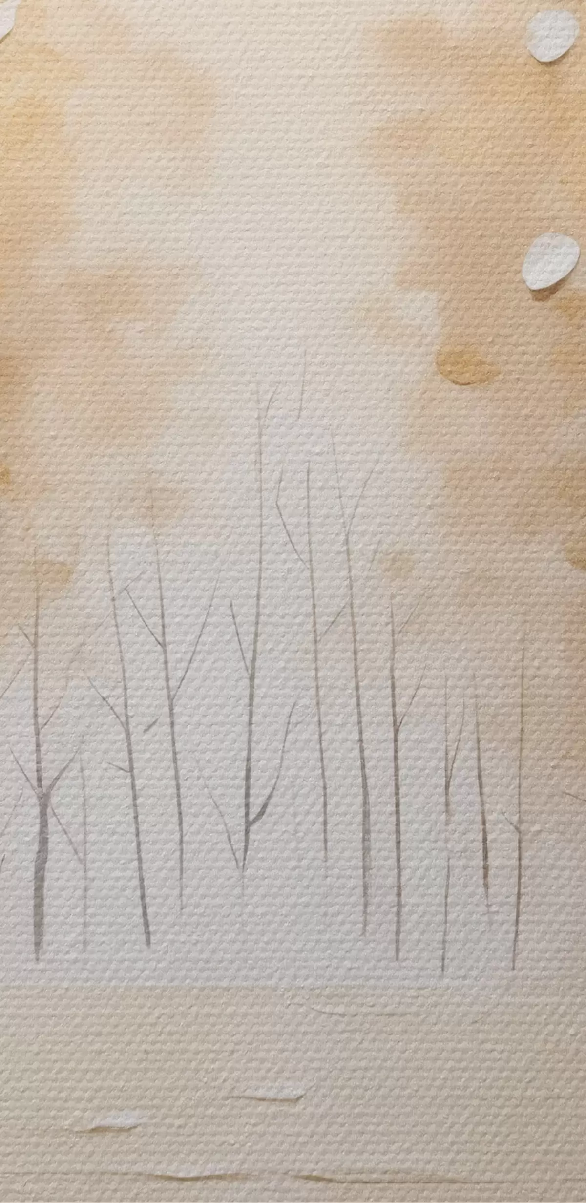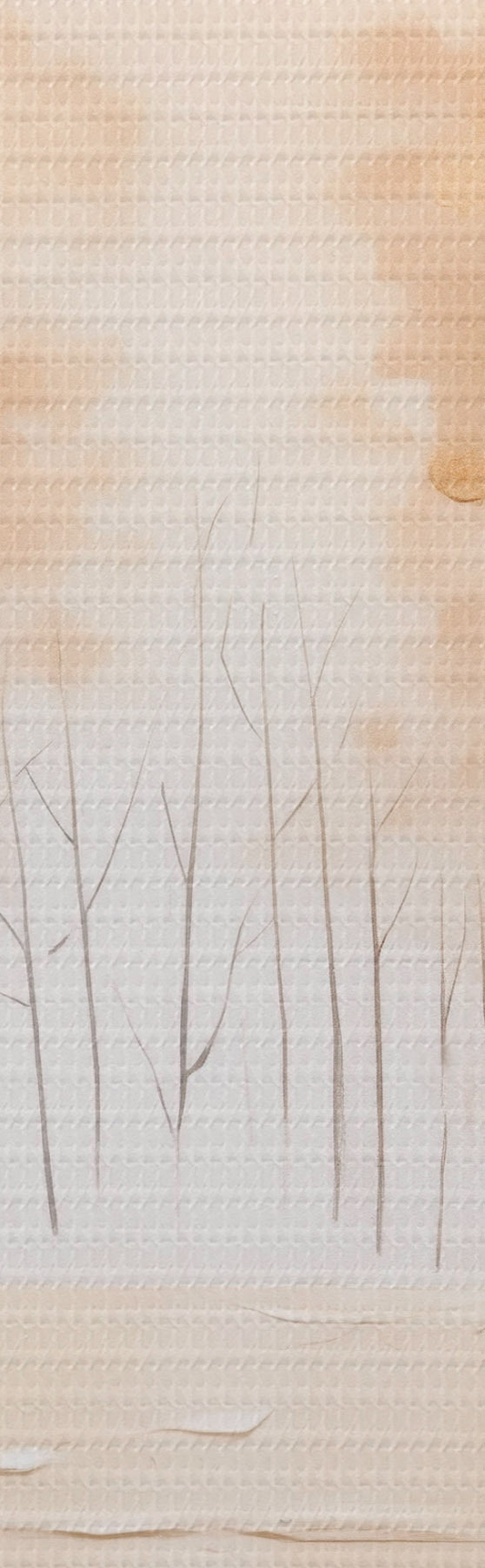 Vászonkép Olajfestmény utánzata barna fák fehér levelekkel egy erdőben, egy folyó közepén, fehér háttérrel Nr s43172
