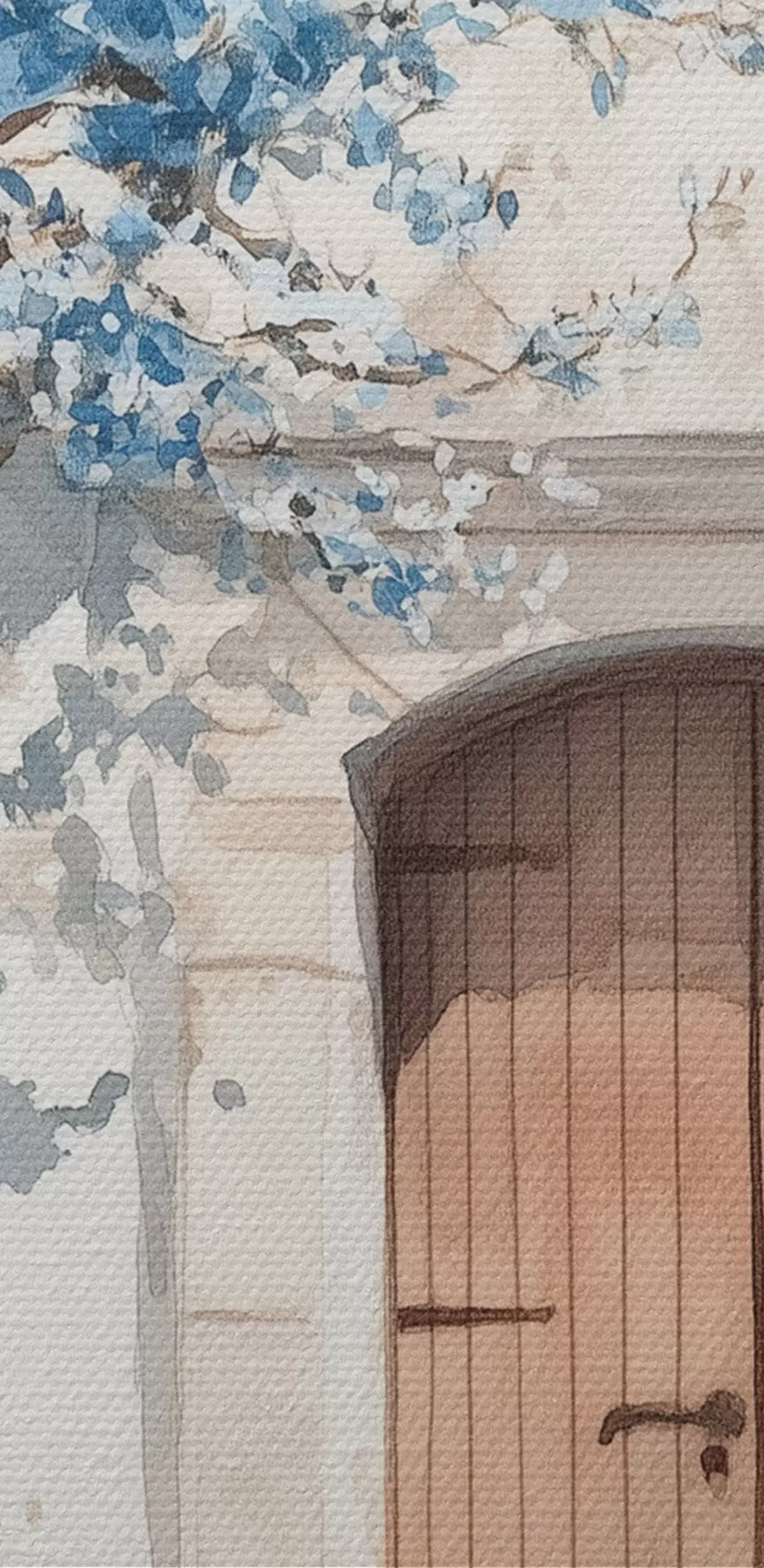 Vászonkép Görög ház gyönyörű fával, építészet, akvarell stílusban Nr s43178