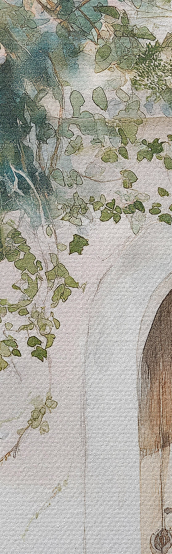 Ahhoz, hogy a vásznat a feszítőrúdra feszítsük anélkül, hogy a kép megsérülne, tükrözött képet használunk.