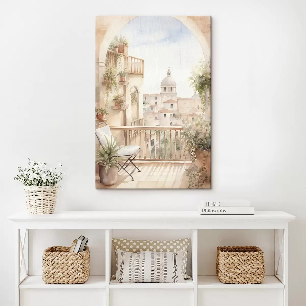 Vászonkép Esztétikus nyári erkély, Spanyolország, régi építészet, blomming, akvarell stílusban Nr s43180