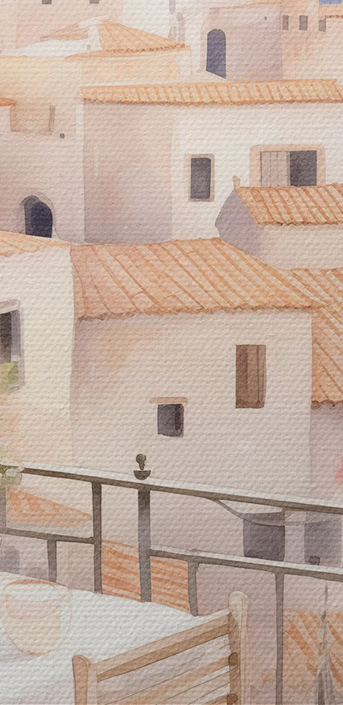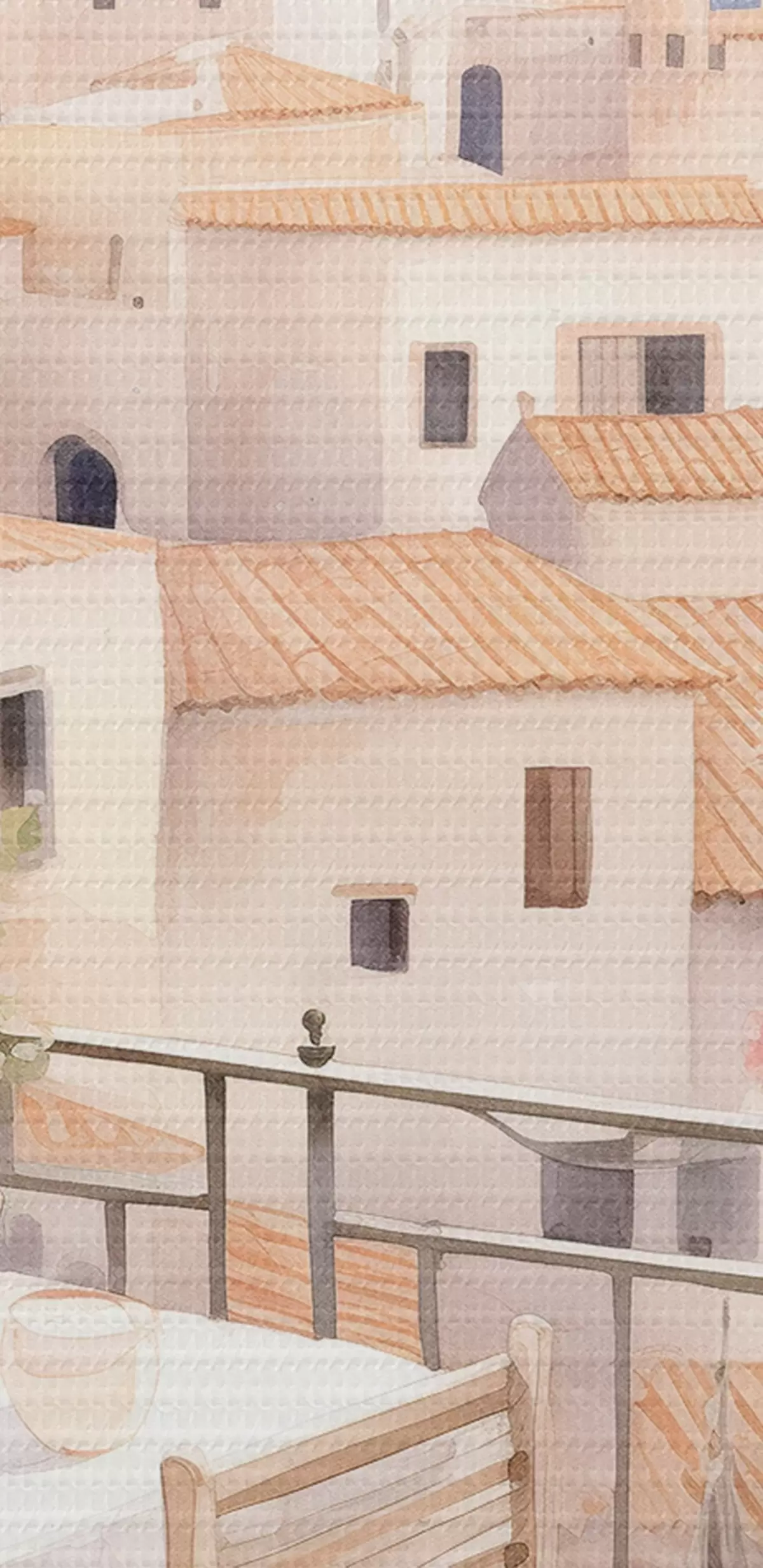 Vászonkép Naplemente az erkélyen, Olaszország, építészet, virágzó virágok, akvarell stílusban Nr s43184