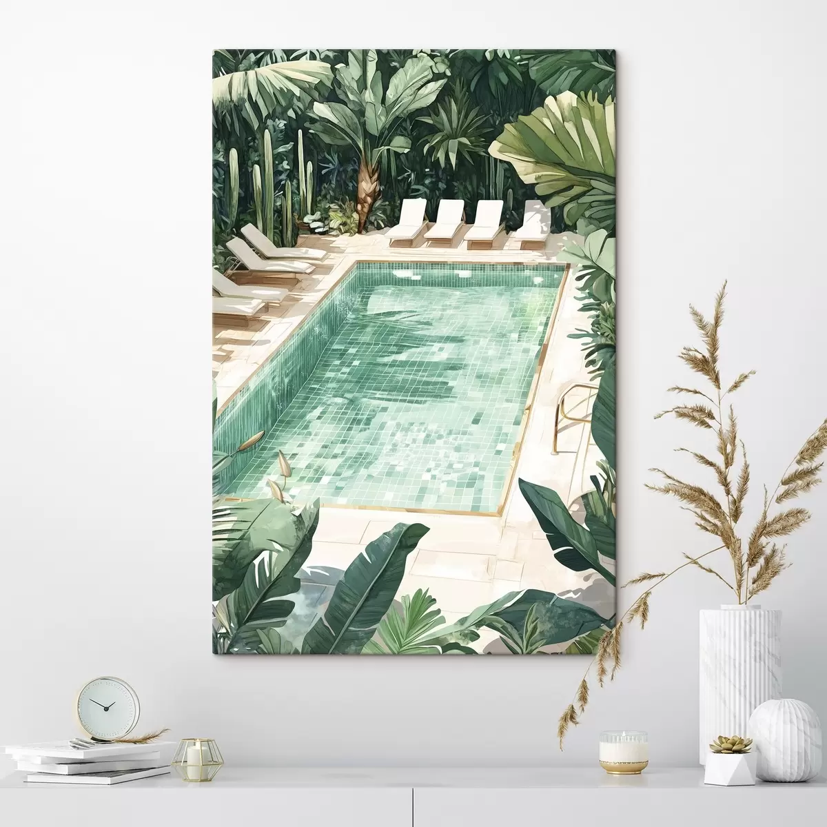 Vászonkép Nyári medence a zöld kertben, vintage stílusban, akvarell Nr s43189