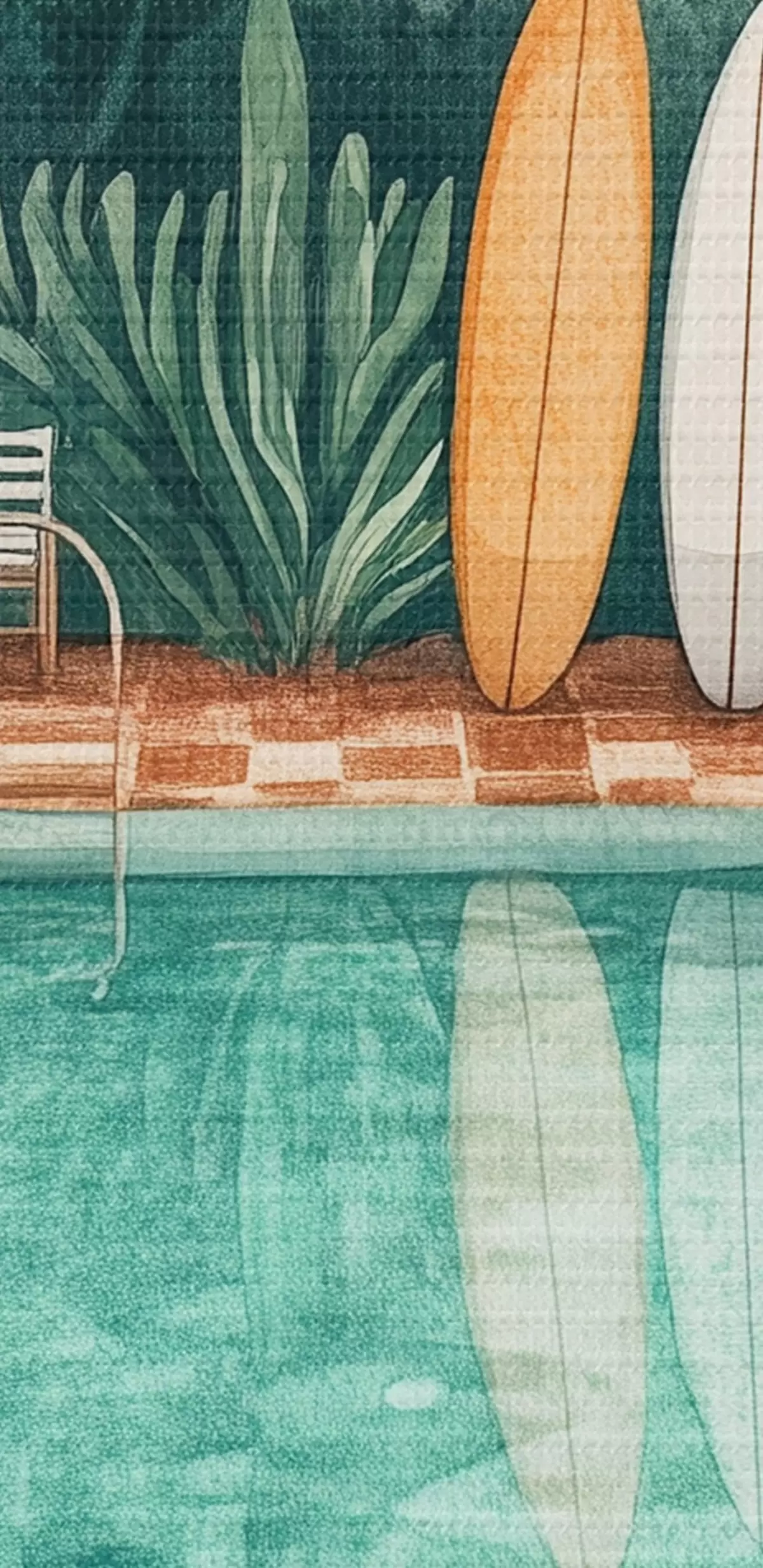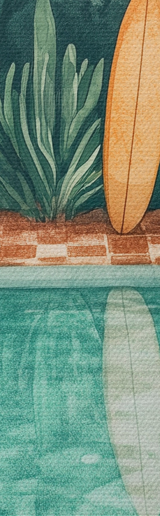 Vászonkép Vintage nyári medence, trópusi erdő, zöld, pálmafák, vízfestmény stílusban Nr s43191