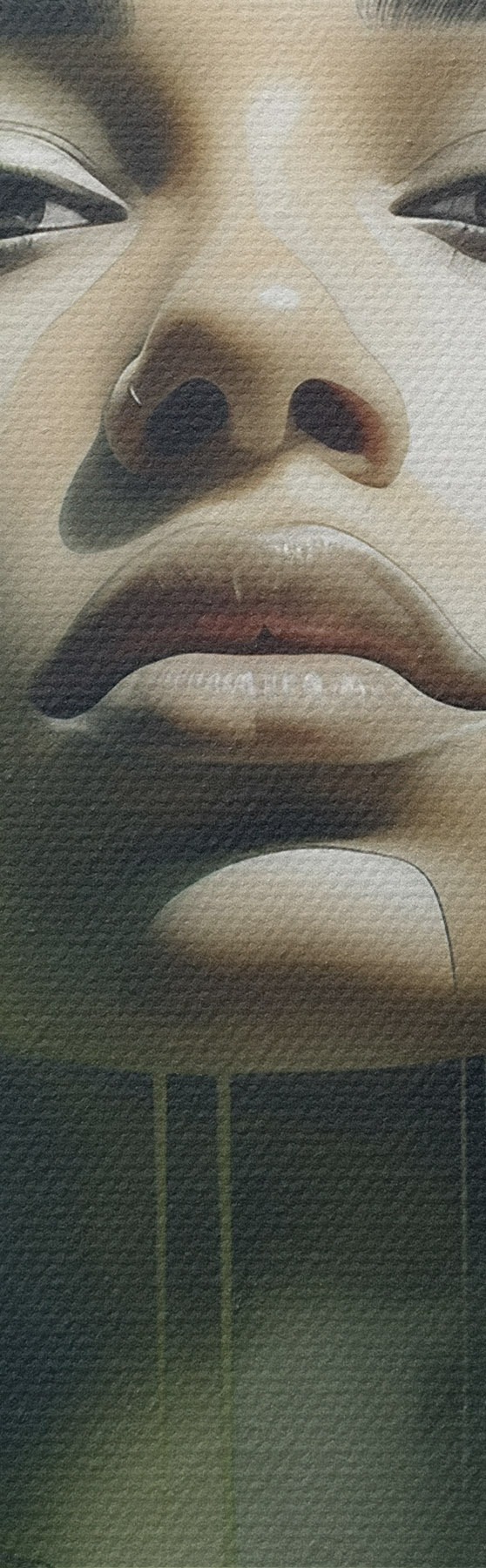 Ahhoz, hogy a vásznat a feszítőrúdra feszítsük anélkül, hogy a kép megsérülne, tükrözött képet használunk.
