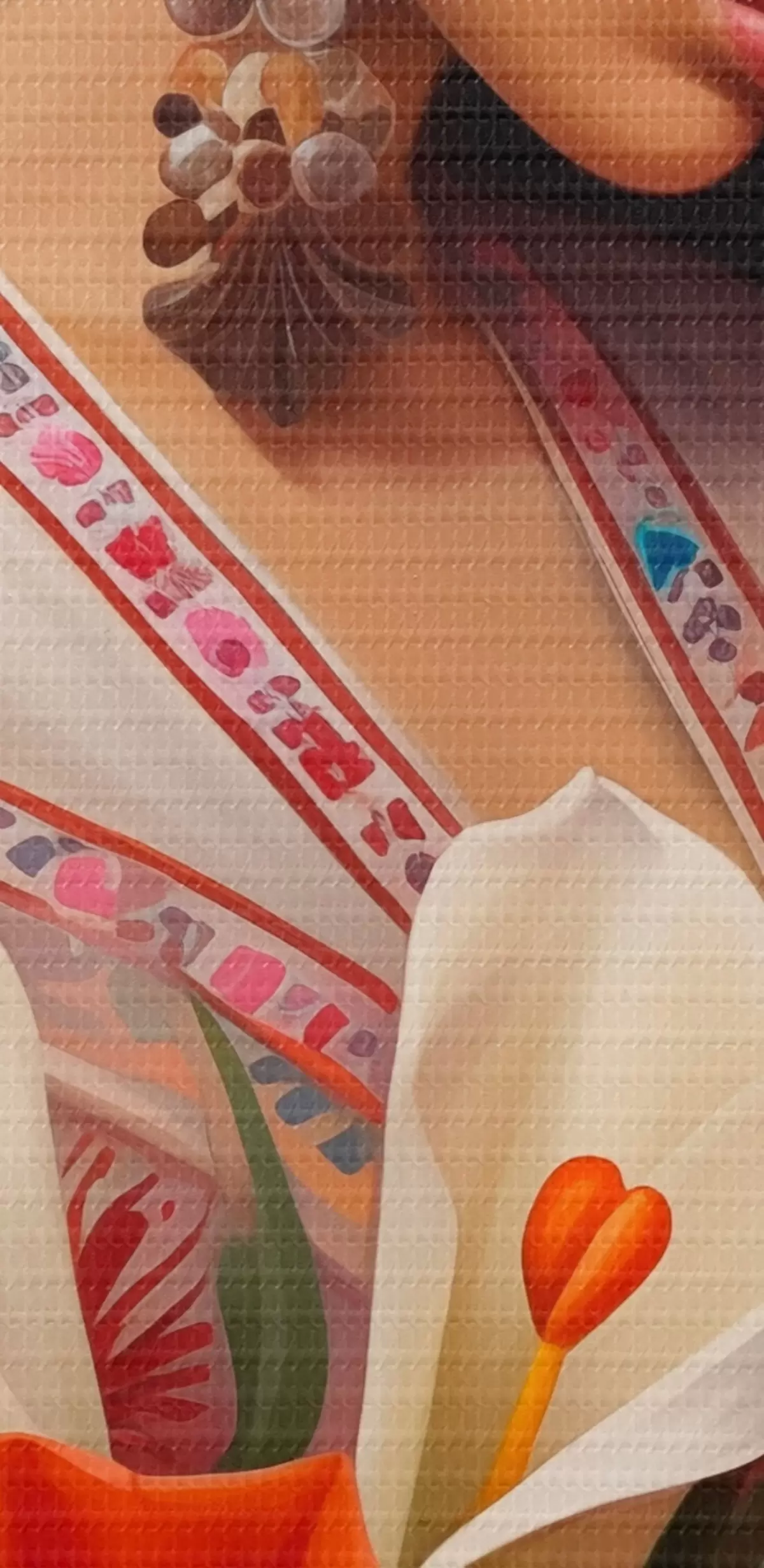 Ahhoz, hogy a vásznat a feszítőrúdra feszítsük anélkül, hogy a kép megsérülne, tükrözött képet használunk.