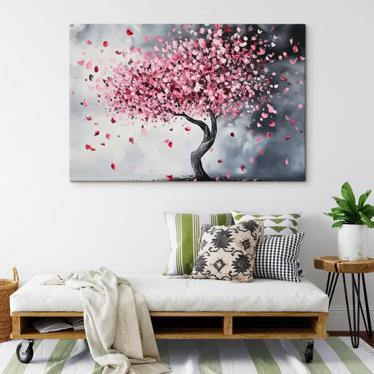 Vászonkép Rózsaszín virágzó fa szürke háttéren Nr s43299