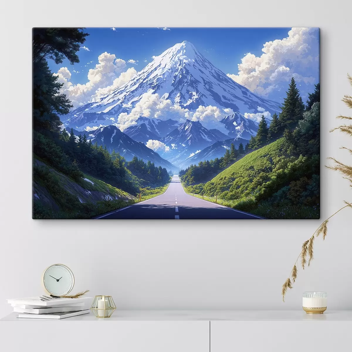 Vászonkép Út a hegyekbe, felhőkkel és erdővel körülvéve Nr s43317