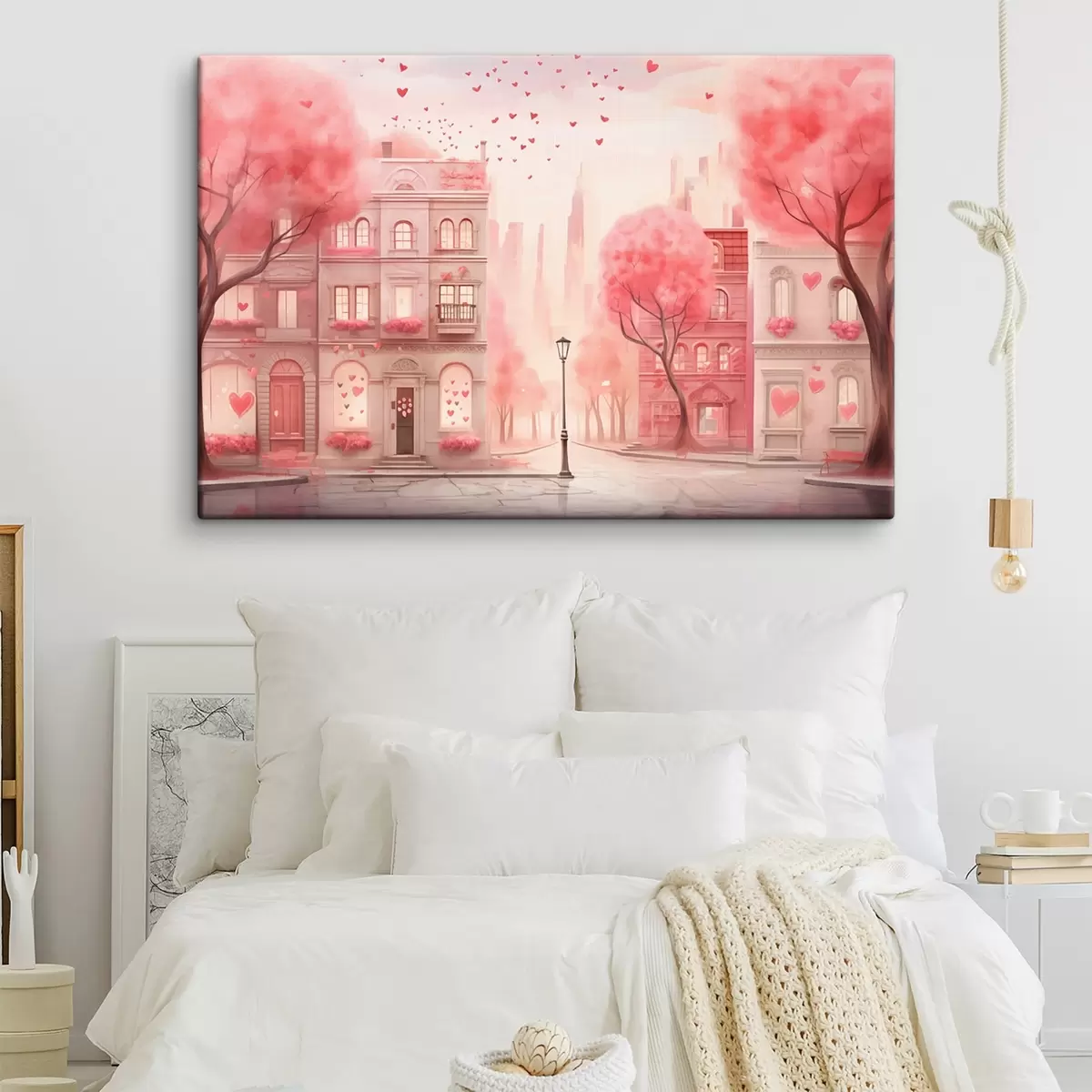 Vászonkép Romantikus rózsaszín utca szívekkel Nr s43324