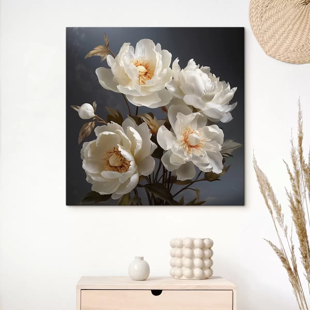 Vászonkép Fehér pünkösdi rózsák összetétele Nr s43368