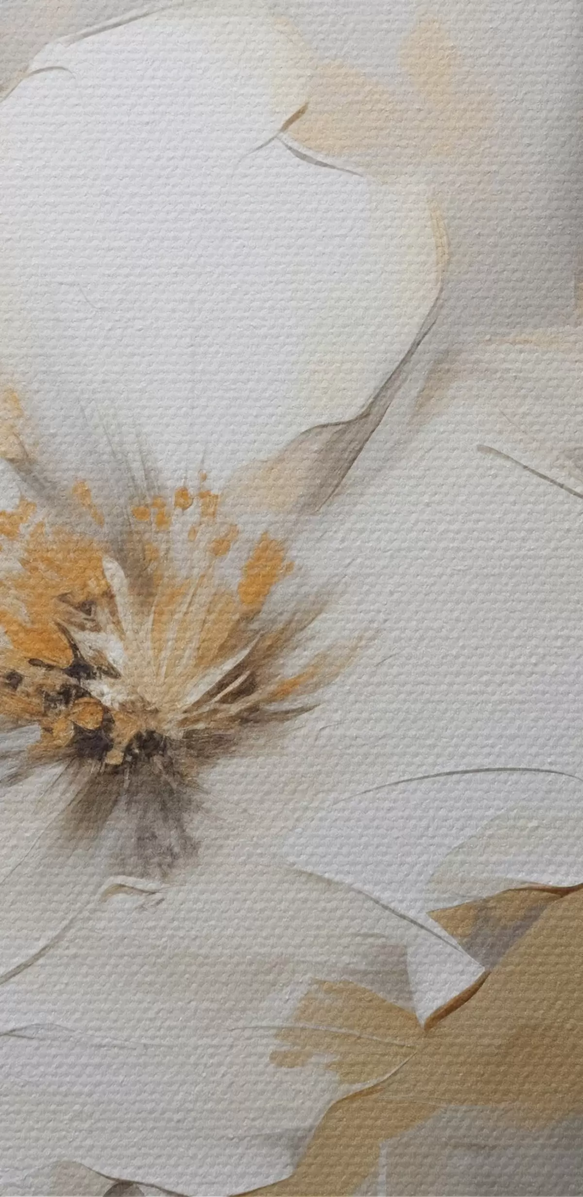 Vászonkép Fehér virágok sárga levelekkel fehér alapon, vastag ecsetvonások utánzása, texturált modern stílusban Nr s43389