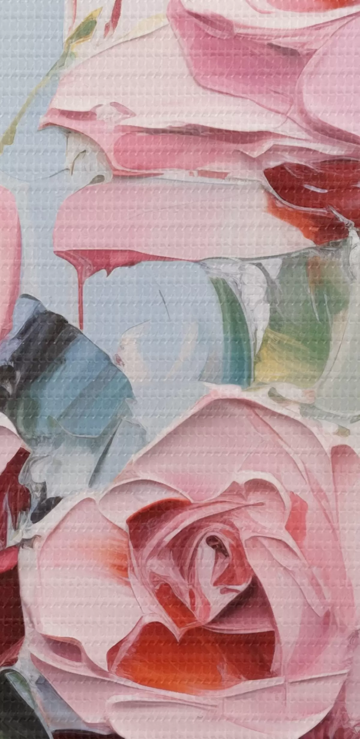 Vászonkép Modern absztrakt művészet rózsaszín és sárga rózsák levelekkel, vastag ecsetvonásokkal, olajfestmény utánzat, pasztell színekkel Nr s43392