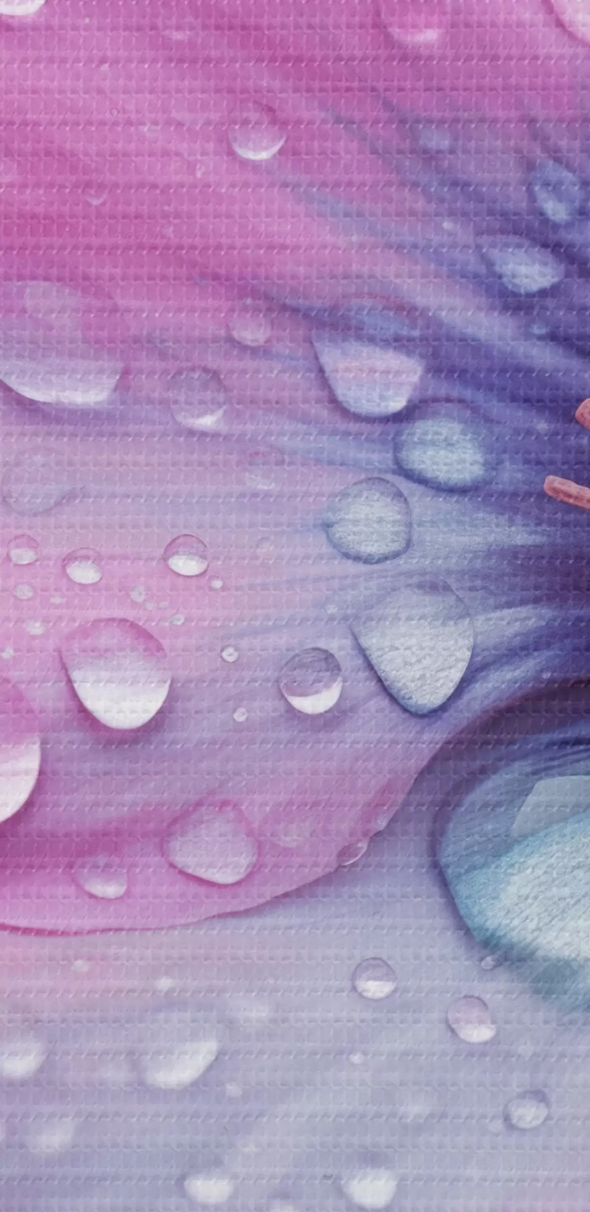 Vászonkép Rózsaszín és lila virágok teljes virágzásban, vízcseppekkel borítva, sötét háttéren Nr s43394