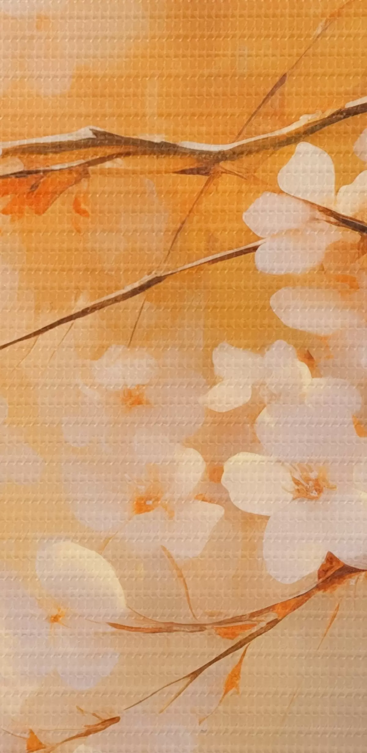 Vászonkép Cseresznyevirág ágak narancssárga virágokkal, meleg színpaletta, sárga árnyalatú elmosódott háttér előtt Nr s43407