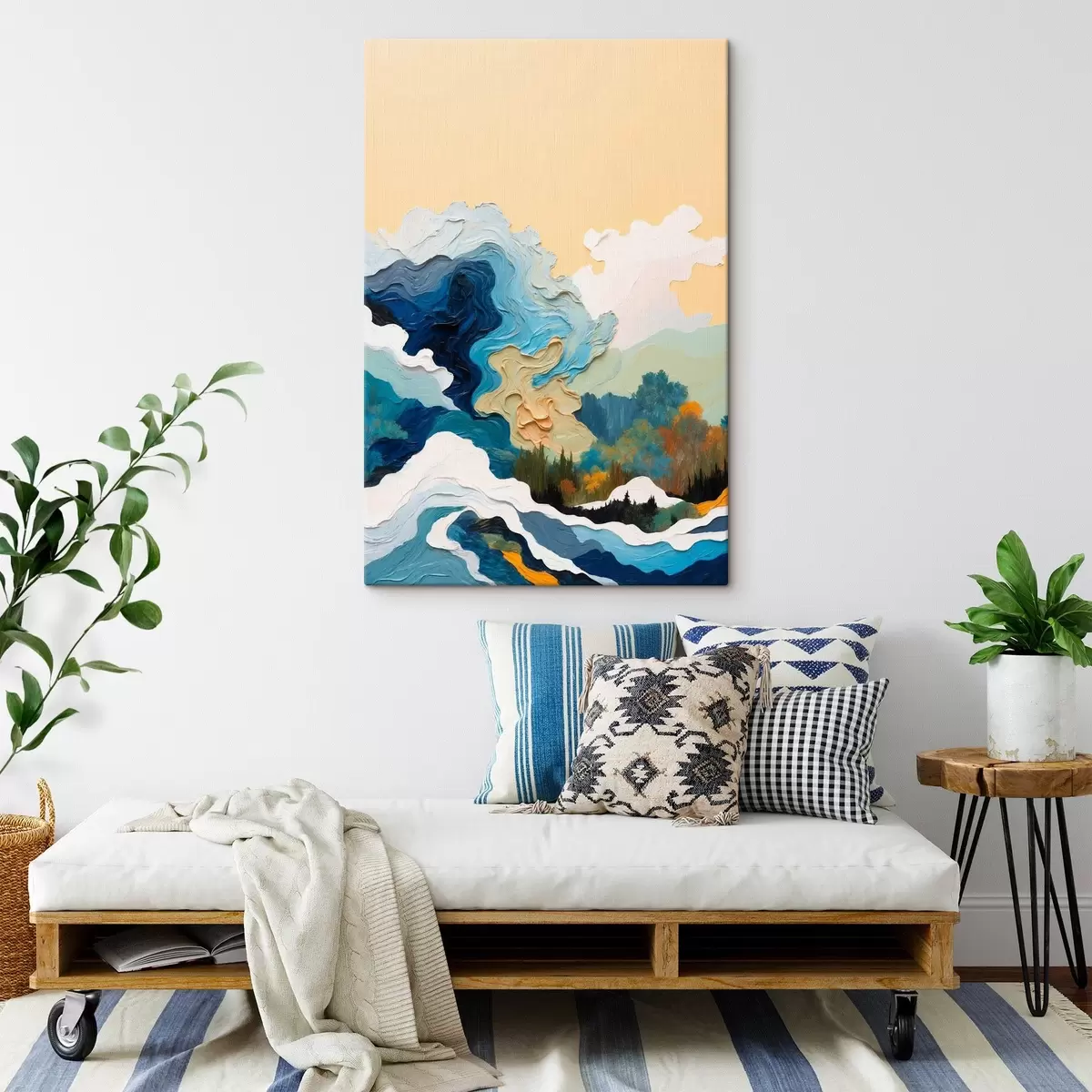 A képeket feszítőrúdra szerelve áruljuk - ez egy fakeret, amelyre a vászon van feszítve. Ezt a képet nem kell bekeretezni; közvetlenül a falra is felakaszthatja.