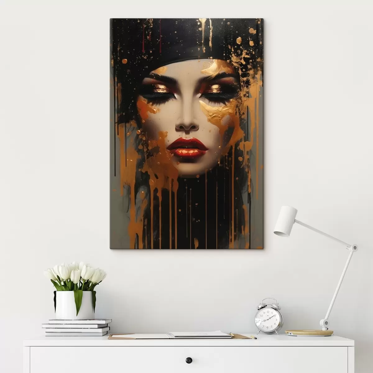 Vászonkép Lány arca sárga festékkel Nr s43468