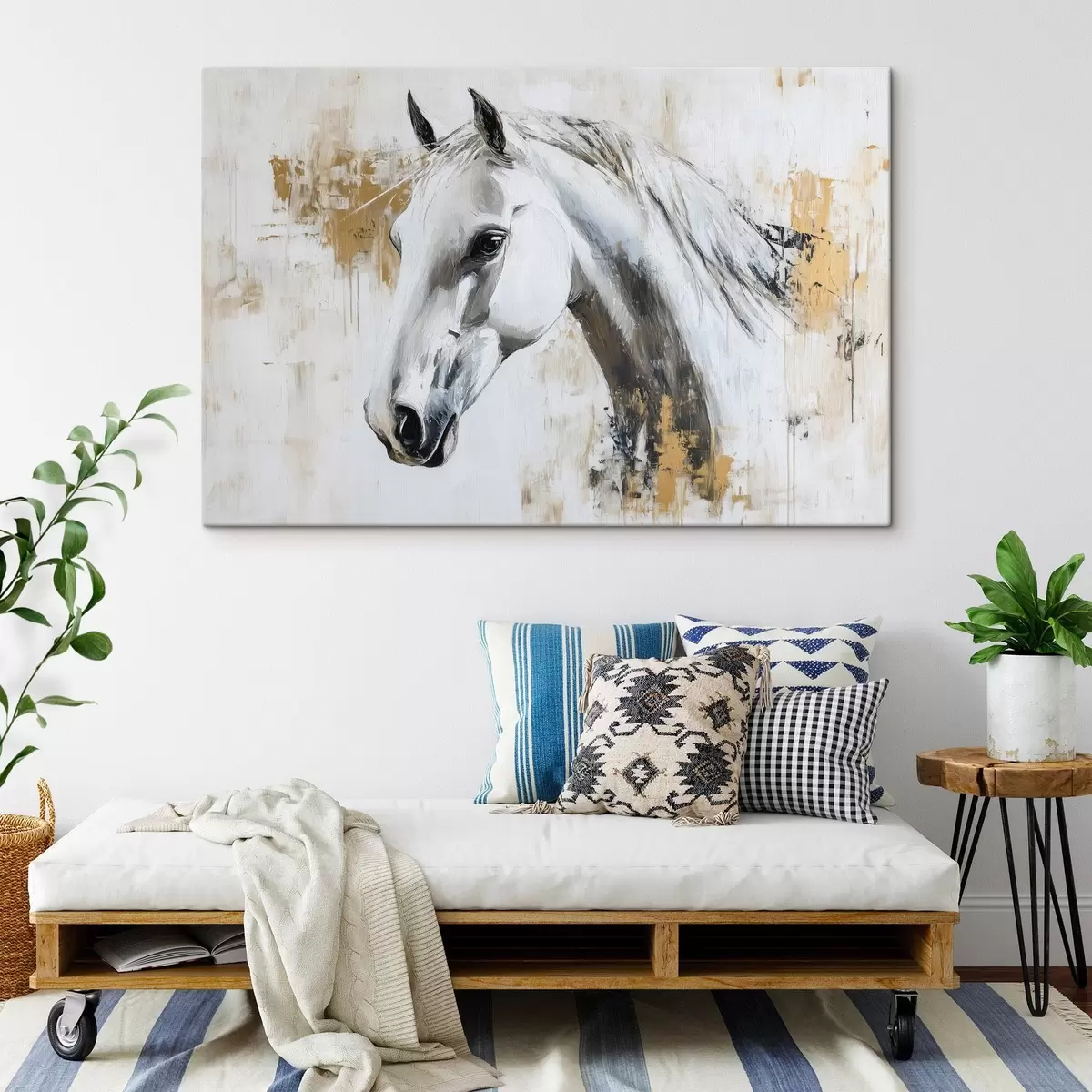 Vászonkép Fehér ló, olaj stílusú rajz, állatok, élénk ecsetvonások Nr s43497